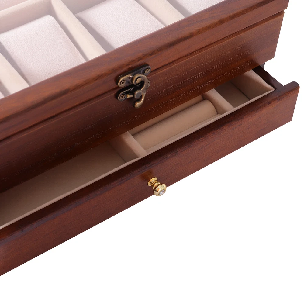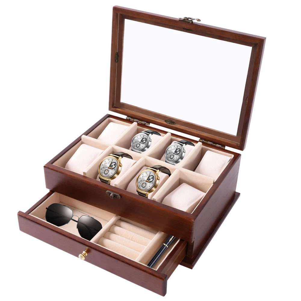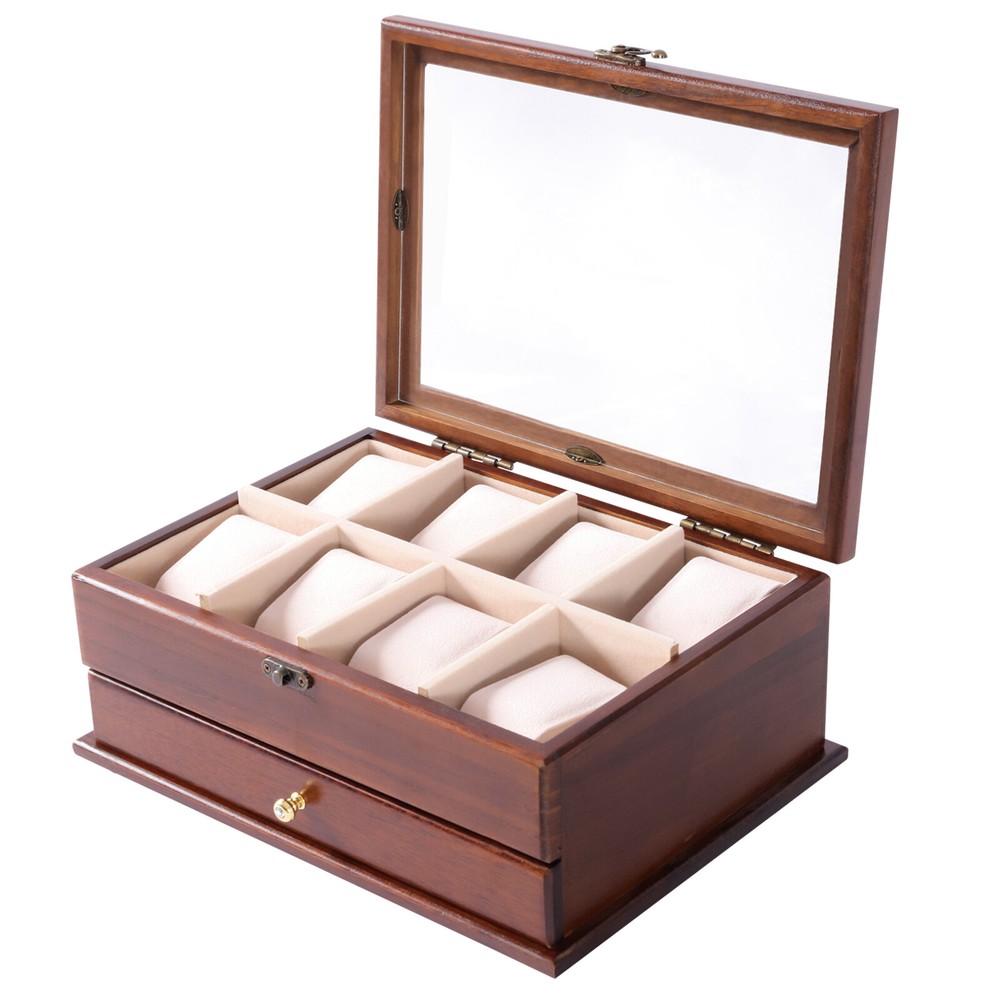 Specification Color: Vintage Brown Material: Sycamore Wood + Flocked Fabric Partition Material: Density Board Skylight Material: Acrylic Pillow Material: Pearl Cotton Surface Treatment: Spray Painting Closure Type: Locking Latch Number of Layers: 2 Number of Watch Compartments: 8 Packing Size: 34.5*26.5*17cm/13.58*10.43*6.69in Product Size: 29.5*22*11.5cm/11.6*8.7*4.5in Gross Weight: 1.8kg/3.96lbs Net Weight: 1.3kg/2.86lbs Package Included 1* Watch Box 2 Layers Wooden Watch Box Storage Holder Case Organizer Jewelry Display Drawer Description Description A Watch Is Not Only a Timepiece but Also a Reflection of Your Personality That Deserves an Exclusive Room. This Watch Box Is a Stunning Masterpiece for Watch Collection Display and Storage. with Its Wooden Box, Soft Pillow, and Flocked Fabric Lining, Your Watch Jewels Will Stay Safe and Comfortable As Time Passes. This Watch Box Will Be an Ideal Choice for You! Application It Can Be Used to Store Watches, Bracelets, Necklaces, Earrings, Rings, Brooches and Other Accessories. Specification Color: Vintage Brown Material: Sycamore Wood + Flocked Fabric Partition Material: Density Board Skylight Material: Acrylic Pillow Material: Pearl Cotton Surface Treatment: Spray Painting Closure Type: Locking Latch Number of Layers: 2 Number of Watch Compartments: 8 Packing Size: 34.5*26.5*17cm/13.58*10.43*6.69in Product Size: 29.5*22*11.5cm/11.6*8.7*4.5in Gross Weight: 1.8kg/3.96lbs Net Weight: 1.3kg/2.86lbs Package Included 1* Watch Box Key Features Sturdy and Durable: It Is Made of High-quality Sycamore Wood, Which Is Durable and Environmentally Friendly. the Surface Is Treated with Spray Paint, Making It Waterproof and Anti-corrosive to Ensure Long Service Life. Large Storage Space: with Two Levels of Storage, Including Eight Watch Slots and a Drawer, It Can Store a Large Amount of Jewelry and Eight Watches to Meet Your Daily Needs. There Is Plenty of Space Between the Cover and the Pillow to Accommodate Watches of All Sizes. Compartment Storage: the Compartments of the First Layer Are Specifically Designed for Watches and Bracelets. the Second One Is a Drawer with Dividers for Rings, Necklaces, Earrings, Etc. Its Compartmentalized Design Allows for Sorted Storage While Preventing Your Precious Watches and Jewelry from Rubbing Against Each Other. Carefully Designed Pillow: the Pillow Is Made of Soft Pearl Cotton and Wrapped by Flocked Fabric on the Outside, Which Is Non-slip and Comfortable to Better Protect and Display Your Watch. Vintage Appearance: This Watch Box Comes in Vintage Brown Color, Retaining the Original Wood Texture to Create a Charming Vintage Style. It Complements Your Noble Temperament While Adding Elegance to Your Home Decor. Soft Lining: Each Compartment of the Watch Box Is Lined with High-quality Flocked Fabric to Provide You with Better Protection for Your Watches and Jewelry from Dust, Dampness, and Scratching. An Ideal Gift: the Vintage Look and Exquisite Workmanship of This Fountain Watch Box Would Be an Ideal Gift for Someone Special like Your Father, Brother, Husband, Friend, Boss, or Fountain Watch Collector. Direct Use: This 2-Layer Watch Box Can Be Used Directly Without Extra Installation, Saving Your Time and Energy. Easy to Clean: It Has a Painted Finish to Make It Easy to Clean. You Can Easily Remove Dust and Stains from It with Just a Damp Rag. Details Quality Hinges: the Hinge Is Made from High-quality Hardware Which Is Strong and Durable. It Has Been Tested Many Times to Open and Close, so You Can Use It with Confidence. Sophisticated Handle: the Drawer Comes with a Sophisticated Handle That Allows You to Easily Open or Close the Drawer, Making It Very Practical. Visible Skylight: the Lid of the Watch Box Has a Transparent Skylight Made of Acrylic, Which Not Only Prevents Dust but Also Provides a Clear View of the Watch's Storage Position for Easy Access and Better Display. Exquisite Latch: the Watch Box Features a Vintage Metal Latch to Make Your Watch Box More Stylish and Sophisticated. and the Latch Can Lock the Box up and Increase the Security of the Watch Box. Anti-slip Pads: It Has Four Non-slip Pads on the Bottom for More Stable Placement. It Also Prevents the Table from Being Scratched. Notes Please Allow the Slight Color Difference Caused by the Shooting Light and 1-3cm Error Due to Manual Measurement, and Make Sure You Do Not Mind Before Ordering. Payment Delivery details Terms of sales About us Contact us Payment We accept ebay payment 。 Fees such as import duties, taxes are not included in the item price or shipping costs. These charges are the buyer's responsibility. Delivery details Shipping: 2-9 working days to: USA Terms of sales We maintain high standards of excellence and strive for hundred percent customer satisfaction. Feedback is very important to us. We hope that you contact us immediately before you give neutral or negative feedback, so that we can address your concerns. It is impossible to address issues if we do not know about them! About us Your satis faction is our ultimate goal. We work hard to earn your trust and future business. Our certified technicians have tested each item before shipping. The unit comes with 1 year limited warranty on all manufacturing defects. a) If you receive a defective item, you may return it or ask for a discount. Please contact us within 14 days after you receive the package. b) What you returned must be intact and in its original packaging as re? u. Customer is responsible for shipping costs of the returned item. c) We will cover the cost of shipping back t with the shipping rate indicated in the registration page. We will send you a new unit or refund the full payment you paid. Thank you. Contact us Business Hour Business Hour: Monday To Friday: 8:30 AM to 5:00 PM (Beijing China time) Due to time zones, our reply to your questions may not be immediately. But within above working time, we will reply your email within 24 hours. If it's non-workdays, please