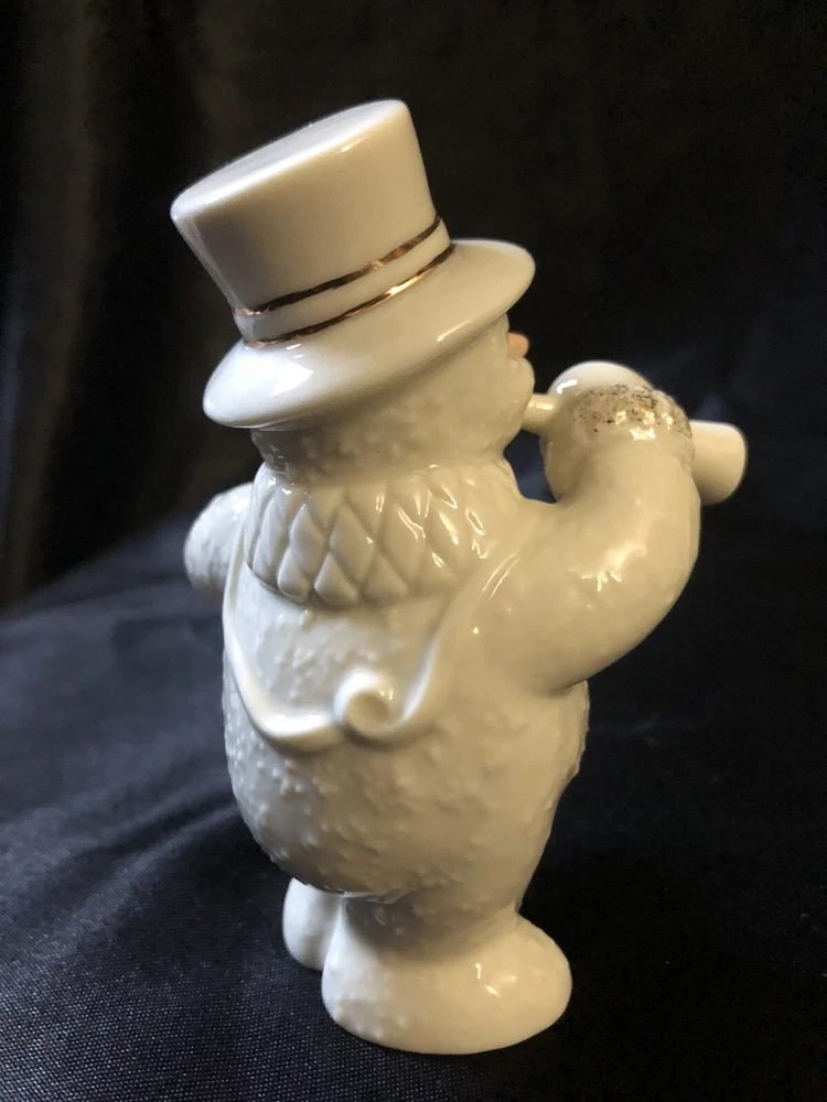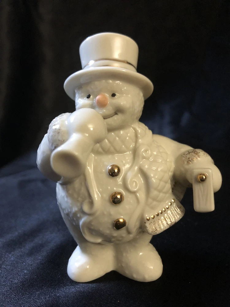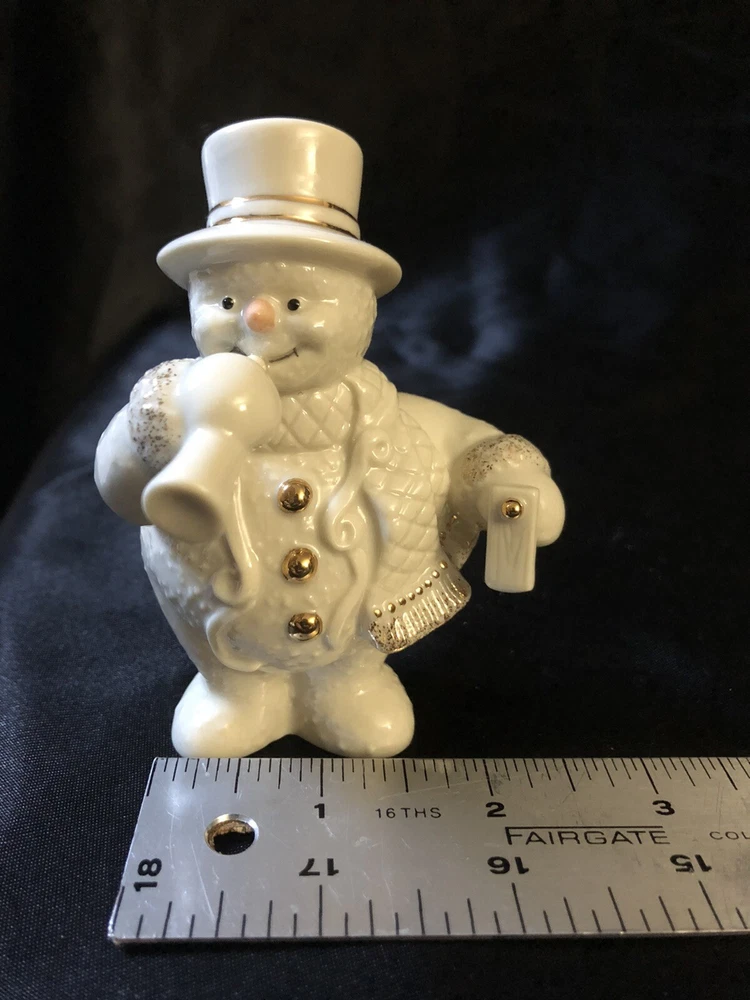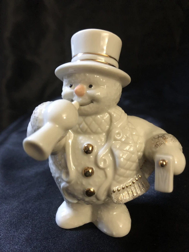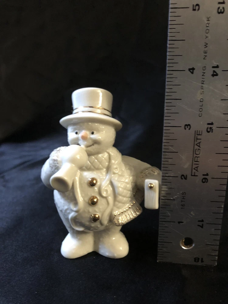 2 Lenox Snow Man Figures W/Top Hats Gold Accents/Hallmark Christmas/Holiday/Winter. Condition is Used. Shipped with USPS Priority Mail. These adorable little snowman are the perfect holiday accent. They are all dressed up and ready to party. There is a horn in their right hand ready to be blown and a noisemaker in the left hand. A confetti streamer is wrapped around his neck and back, like it just fell from the sky. There’s gold tone accents around the top hat,buttons,scarf,sleeves, and noisemaker. They are both marked Lenox in gold. Their is a sticker stating handcrafted in China. There are no cracks,chips, or repairs. Please see photos as part of description. Feel free to browse my other listings. Thank you for your time.