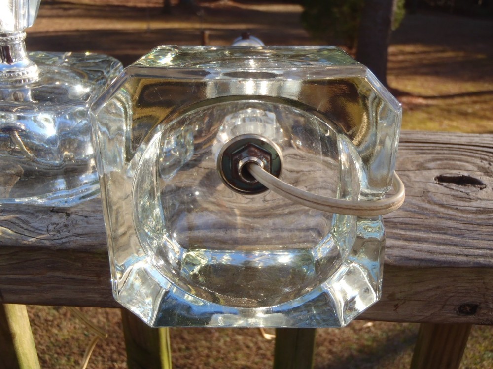 Up for bid here is a vintage pair of mid century art deco clear acrylic/lucite and glass 3 tier electric boudoir dresser table lamps, ca 1950s-1960s. These as came out of an Estate, but the maker and exact age is not known. These lamps are in very good p re-owned working condition with minimal surface patina/use and no chips or cracks. The lamps are tiered and the top two tiers are made of thick clear acrylic or lucite, silver color spacers, and the bases are clear thick glass. Each lamp measures approx. 12" tall by 3 1/2" square at the base. Each lamp also has an approx. 60" long electrical cord with plug in. Folks, this is a lovely Art deco pair of electric boudoir dresser table lamps and it they would go wonderful in a collection or home. U SPS Ground/Parcel and FedEx Ground/Home Delivery mail true calculated shipping costs is based on a insured well wrapped and packed 7 lb shipment, box size 16Lx9Wx7H. If you would like to see the all the available shipping services with calculated shipping costs, please look under the Shipping & Payments tab above the Item Specifics on our auction page or scroll down to the Shipping, returns & payments section and hit the small arrow on the right of Returns, thanks. NO WORRIES ... YOU CAN BID HERE IN CONFIDENCE! We are a true U.S. seller, NOT a drop shipper and item ships from our U.S. location! As always ... Low Opening Bid and Never a Reserve! Plus, we NEVER end an auction early or CANCEL a bid after the auction has ended! PLEASE BID ONLY IF YOU ARE SERIOUS and INTEND TO PAY IF YOU ARE THE SUCCESSFUL WINNER! Our quality merchandise come directly from Estate Sales, private homes, thrift shops, and local auctions hand picked and purchased by my husband and me. As most of you may know, most vintage or used items will have some age and/or wear, and here we like to describe as accurate as possible and show many photos, so you know exactly what you are bidding on. We are human and do make mistakes, but we honestly try very hard not to here so please rest assure and bid in confidence. Typically, our photos are shot outdoors under natural lighting on a not so fancy old railroad tie, rail, against our home, or somewhere outdoors, so please excuse any camera reflection glares, white spots or specks and shadows. Yes, we are old school and our descriptions also may be more lengthy than others, but we like you know exactly what you are buying/bidding on so there are no surprises. Please read the entire description, see all photos and ask any questions before placing a bid. All emails/messages are answered. We are rural and ship by USPS Ground/Priority and FedEx Ground/Home Delivery (true calculated shipping) and (free shipping) for local pick-up. We also recycle and use over-sized boxes and new high quality packaging materials to ensure your item(s) will arrive to you safe and unharmed. We do not charge for boxes, packaging materials, gas, or handling. We do not profit any money from shipping costs or sales tax. You are only charged true actual calculated postage and all items are shipped fully insured with carrier. We ship same or next day unless it is a holiday or a weekend, then shipment will be the following business work day. Payment is due within 3 days of close of auction, unless you have made prior arrangements with us. Please bid only if you are serious and intend to pay within the allotted time frame. North Carolina buyer must pay 7% sales tax. We combine shipping to save you money and give shipping discounts on 3 or more auction wins. The eBay combined shipping calculator is not always correct, so if you win 2 or more auctions please request or wait for a combined invoice for appropriate total. Our items come from a smoke free home. We do have many pets, but all items are stored in a pet free environment until delivery day. Claims/Refunds - Please DO NOT request a return on merchandise damaged in shipping. Insurance claims can only be filed upon proof of damage (proof of damage is pictures which are most needed to file claims) and before issuing you a refund. So if your item happens to arrive to you damaged in shipping, please contact us and DO NOT THROW ANYTHING AWAY. In order to file a USPS/FedEx online claim, we must have pictures of the shipping box at every angle, shipping labels (tracking/addressee), bubble wrap, wrapping/packing materials (packing/partitions), and of course the breakage. Once we receive all the requested pictures, we can send you a full refund ASAP. If there is a problem with your order, simply contact us. As an old-school eBay Seller, we list in the spirit in which eBay was founded; a place to find vintage, unusual, rare, hard-to-find, one-of-a-kind, and various quality items at affordable prices, for you! SHOP, BID and BUY IN CONFIDENCE! SATISFACTION GUARANTEED! Please, no buyer's remorse and ask any questions before placing a bid. We have been auctioning on eBay for 26+ years and truly only want the very best for you and us both. We honestly describe all our items to the best of our knowledge and ability and show many photos, but if you have a question(s) or just need further info. or pictures, please let us know. We don't just want you satisfied; we want you to be a happy returning customer for years to come! ;) THIS IS A 10 DAY AUCTION and HIGHEST BID WINS! THANK YOU FOR LOOKING and GOOD LUCK IF YOU BID! TAKE CARE and HAVE A BLESSED DAY!