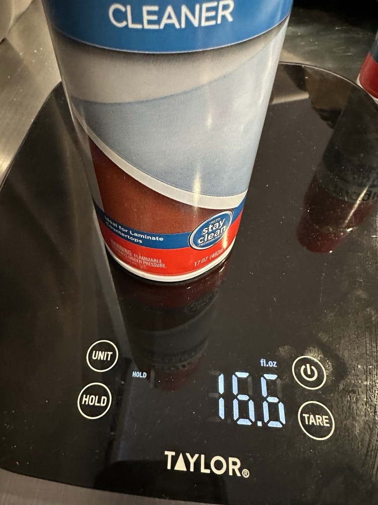 (2) cans Magic Countertop Ckeaner. One can feels full, one used some. I did provide the weights for you to judge. One small dent in one of the cans(pictured). Includes lids