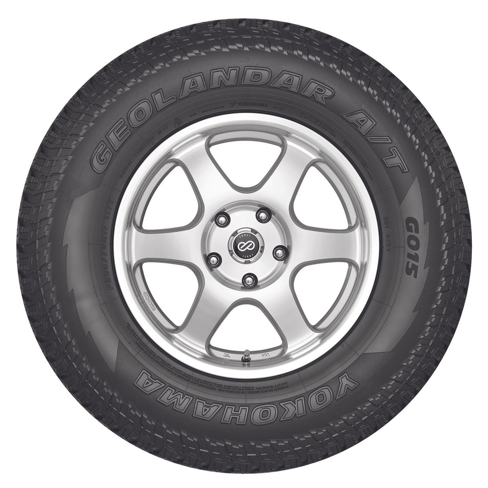 New Yokohama Geolandar At G015 - P235x70r15 Tires 2357015 235 70 15 Great warranty: 60000 All season passenger tire Click Thumbnails to Enlarge Get technical The Yokohama Geolandar A/T G015 is an all-terrain tire that's designed for pickup trucks, SUVs, and crossovers. Suitable for all weather conditions, the all-terrain tire provides a great blend of on-road practicality and off-road fun. With severe snow service-rated (3PMSF), the Yokohama tire assures confident grip and traction in moderate to extreme conditions of ice and snow. While the flatter profile and cut-and-chip-resistant Enduro compound boost treadwear and improve longevity, the circumferential grooves of the Geolandar A/T G015 clear water from the tread to resist hydroplaning and enhance wet performance. Backed by an up to 60,000-mile limited treadwear warranty and 30-day satisfaction guarantee, the Yokohama A/T G015 is available in different sizes including 15, 16, 17, 18, 19, 20, and 22 inches. Features & Benefits Backed by a 60,000-mile limited treadwear warranty Covered by Yokohama's 30-day satisfaction guarantee Three-Peak Mountain Snowflake (3PMSF) certified for great snow and ice performance Endurocore construction for added strength for carrying heavy loads Cut and chip-resistant Enduro compound for extra durability Technical specs Tire Size P235x70R15 Part# 110101587 Serv Desc 102 T UTQG 600AB Sidewall OWL Treadlife Warranty 60000 miles Inflation Pressure 51 psi Tire Size 13/32 Tire Weight 30 lbs Rim Width Range 6.00-8.00" Sect. Width 9" Overall Diameter 28" Every purchase includes: Fast shipping We offer FREE standard shipping on most orders within the continental US. Additional charges will be added when expedited delivery is selected. Please verify your shipping address prior to checkout as we are unable to make any changes once checkout is complete. Most orders are processed by our warehouse within 1-2 business days. Listed delivery times are estimates and actual times may sometimes be longer than that (depending on the carrier and excluding holidays). Please keep in mind that adverse weather conditions, remote delivery locations and carrier delay could cause your actual delivery time to be slightly longer. Our warehouses, shipping carriers and customer contact center are closed on major holidays. You will receive an email confirmation of your order within 24 hours of placing your order and an additional email confirmation with tracking information once your order has been shipped. If a shipment has arrived damaged or is the incorrect item, please contact us via eBay message to inform us. We will report the damage to the shipper and arrange for a replacement or exchange of the damage or incorrect item(s). We will also arrange for the return. 2 to 4 days to deliver Easy returns Returns are accepted within 30-days of delivery. Only unused tires that have not been driven on or mounted are eligible for return. Once approved, a full refund will be credited back to the original form of payment. 30 days to return Money-back guarantee PLEASE NOTE: All tires offered for sale by SimpleTire are shipped from one of our many different automated warehouses. There is no local pick-up available. All of the product information has been provided by the manufacturer and has noted in the item listing. Manufacturers often will change item details and as a result may not update their pictures. The picture provided is a stock photo and may or may not reflect the actual product being ordered. Please refer to the part number and sidewall description of the tire for exact specifications. We have no personal knowledge or experience with this product, nor do we have the ability to customize it. All items are shipped as addressed from an automated warehouse. The time to process and ship is listed prominently in each listing, yet listed delivery times are estimates and actual times may sometimes be longer than that. There is NO human intervention in this process. That is how we control costs and keep our prices low. PayPal requires that we only ship to the verified PayPal address provided with the order. NO ADDRESS CHANGES ARE POSSIBLE. Due to the nature of our order processing, some orders may not be able to be canceled after being placed. If a customer ordered the wrong size or made a mistake, please initiate a return upon receipt of your order. Pricing Policy Pricing or availability errors may occur on SimpleTire. The receipt of an order confirmation does not constitute our acceptance of an order or our confirmation of an offer to sell a Product. SimpleTire reserves the right to cancel any orders containing pricing or availability errors, with no further obligations to you, even after your receipt of an order confirmation or shipping notice from SimpleTire. SimpleTire may, at its discretion, either contact you for instructions or cancel your order and notify you of such cancellation. Due to the nature of our order processing, some orders may not be able to be canceled after being placed. If a customer ordered the wrong size or made a mistake, please initiate a return upon receipt of your order. Some discounts are limited-time offers. The discount we can offer for any item is dependent upon its availability from our various partners, SimpleTire's price will necessarily change on occasion. Items in your Shopping Cart will always reflect the most recent price displayed on the item's product detail page. This price may differ from the price shown for the item when you first placed it in your cart. Placing an item in your cart doesn't reserve the price shown at that time. It is also possible that an item's price may decrease between the time you place it in your cart and the time you purchase it. SimpleTire consistently works toward maintaining competitive prices on everything we carry. As a result, SimpleTire does NOT offer price matching. Inventory Policy All SimpleTire suppliers only ship tires with DOT dates that do not exceed 4 years. If