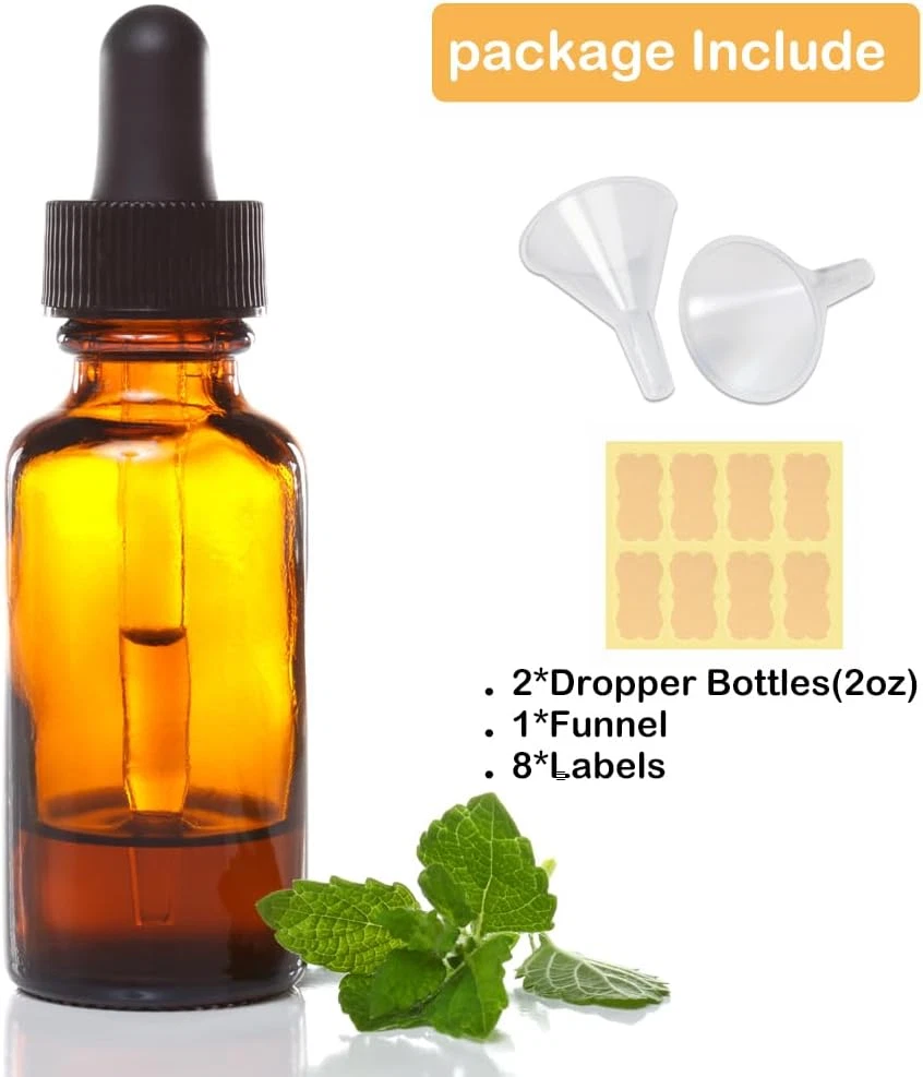 2 Oz Glass Dropper Bottles - 6 Pack Eye Dropper Bottles with Funnels & Labels -