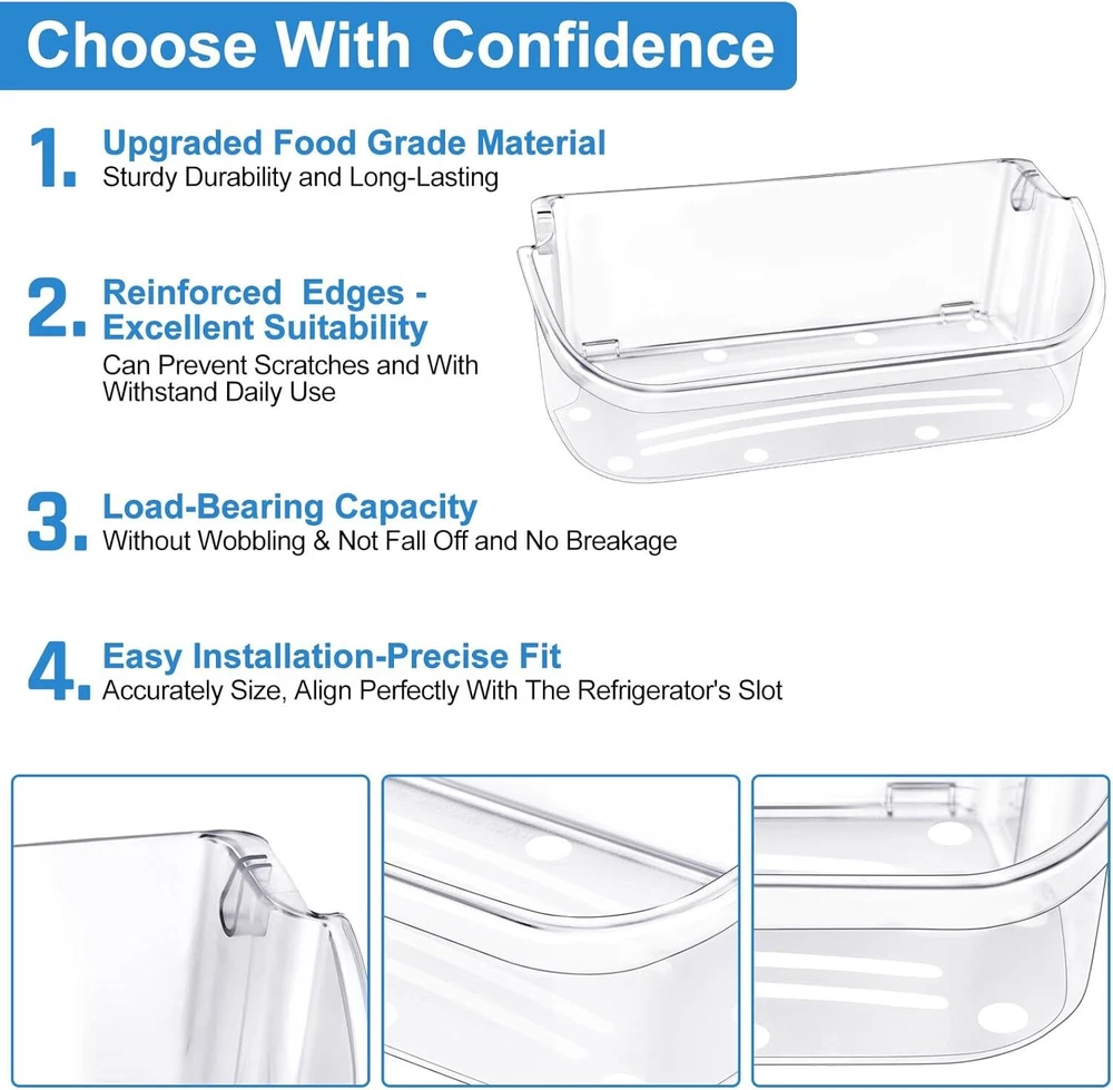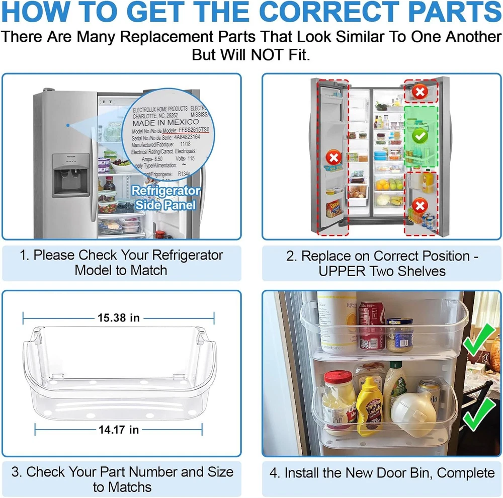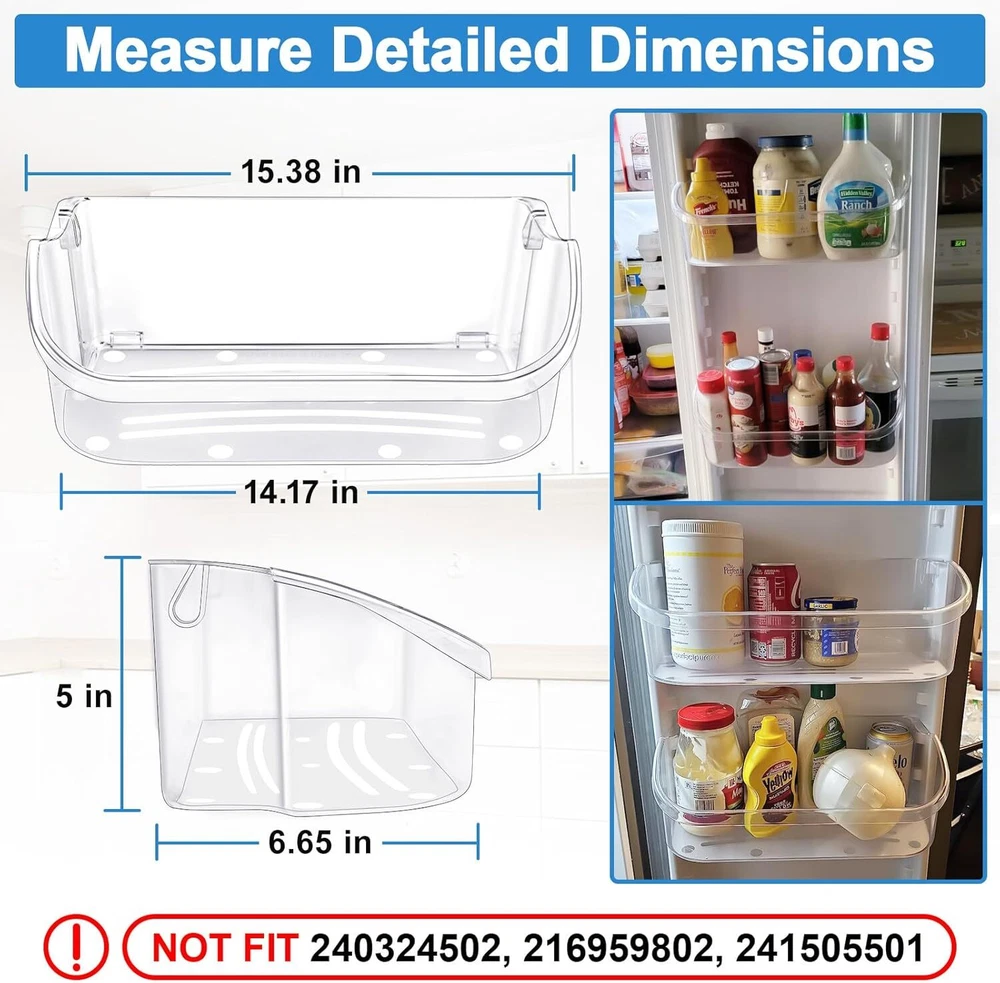 [2 PACK] UPGRADED 240356402 Refrigerator Door Bin 240356402 door bin 2 PACK Product Details Manufacturer: ALVAR Part Number: 240356402 Item Weight: 2.99 pounds Product Dimensions: 15.38 x 6.65 x 5 inches Country of Origin: China Item model number: 240356402 refrigerator door bin Color: 240356402 door bin 2 PACK Style: Crafted with high-quality Suitability and Durability materials, this door bin seamlessly fits into your Frigidaire refrigerator, providing ample storage space for beverages, condiments, or snacks. Its sleek and practical design complements the interior of your fridge, while the sturdy construction ensures long-lasting performance. Maximize your refrigerator's efficiency and enjoy convenient access to your favorite items with the Frigidaire 240356402 Door Bin. frigidaire door shelf replacement; 240356402 frigidaire door bin;frigidaire replacement door shelf; frigidaire shelf replacement; frigidaire fridge door shelf replacement; frigidaire refrigerator door shelf; frigidaire door shelf; frigidaire replacement shelf; frigidaire replacement shelves; frigidaire refrigerator parts -----100% Quality of Service - Suitability and durability are your first choice when you are concerned about refrigerator replacement 240356402 shelf bin parts. We use rigorous testing to ensure the suitability of our products for buyers' refrigerator shelves. All refrigerator replacement shelves are 100% safety tested to ensure consistent quality you can trust. Material: Upgraded Food Grade Material Voltage: 115 Volts Special Features: frigidaire gallery door shelf replacement Good toughness No breakage Usage: frigidaire door shelf replacement / frigidaire replacement door shelf/ frigidaire replacement shelves Included Components: 2 x 240356402 frigidaire door shelf ;2 X Soda Can Organizer Batteries Included?: No Batteries Required?: No 【240356402 Refrigerator Door Bin- Compatibility Models】240356402 frigidaire shelf replacement fits Frigidaire Refrigerator parts-Model Reference: LFSS2612TE0, FFSS2615TE0, LFSS2612TF0, LFSS2612TF2, LFSS2612TF4, LFSS2612TP0, FFSS2615TS0, FFSS2615TS2, FFSS2615TS5, FGHS2655PF0, FFSS2615TP0, FGHS2631PF4A, LGHX2636TF0, LFSS2612TE2, LGUS2642LF1, FGHS2655PF, LGHX2636TFB, LGHX2636TF5, FGHS2631PF0, LFSS2612TE2, LFUS2613LE0, LFSS2612TP5 door shelf bin etc. To save your time and avoid making a purchase mistake, make sure the model matches before you buy. 【High Quality Material - Features of Sturdy & Durable】240356402 Frigidaire replacement shelves made of Upgraded Food Grade Materials and advanced technology, Sturdy and safe excellent stability and load-bearing capacity, meet withstand frequent use and temperature changes inside the refrigerator. Easy Installation, designed for seamless installation, have undergone multiple rigorous tests to accurately measure its size, ensuring align perfectly with the refrigerator's slot, fits perfectly and works great.