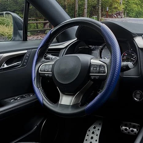 Universal Fitment: Yes Color: Blue Items Included: Steering Wheel Cover Features: Quick Release, Anti-Slip, Easy Installation gtin13: Does not apply Type: Steering Wheel Cover Material: Carbon Fiber Item Diameter: 38 cm (14.96 in) Brand: Unbranded UPC: Does not apply
