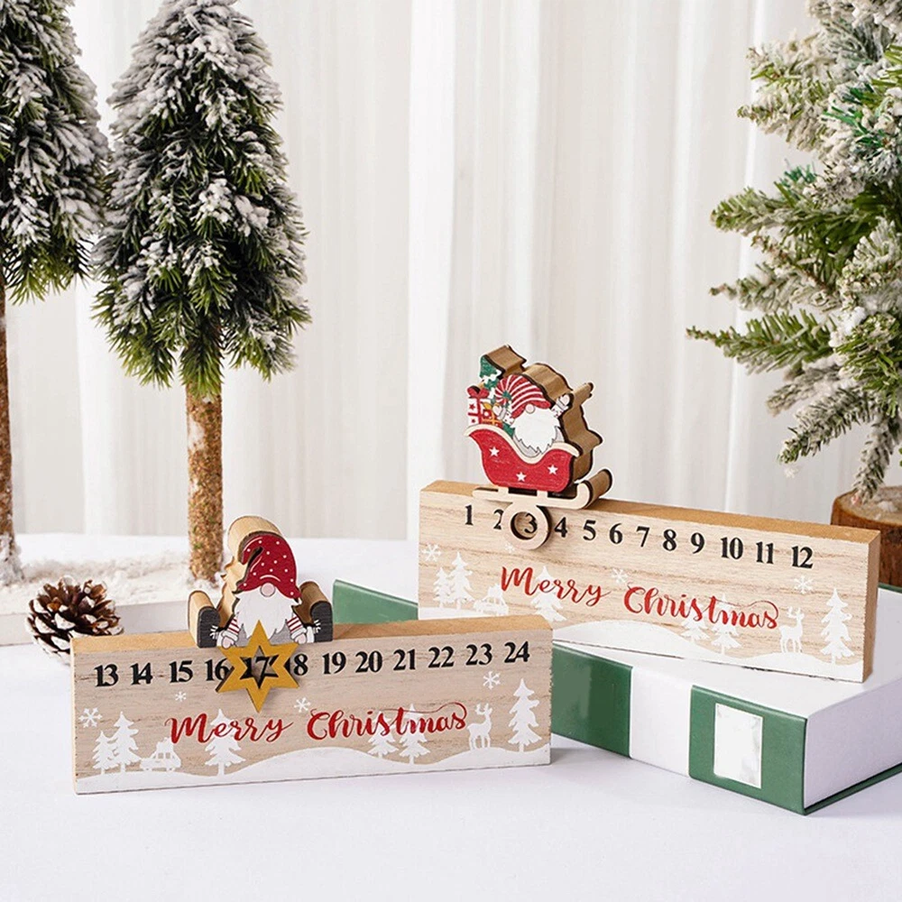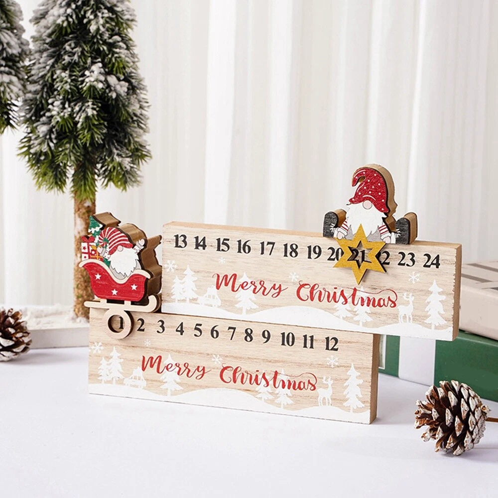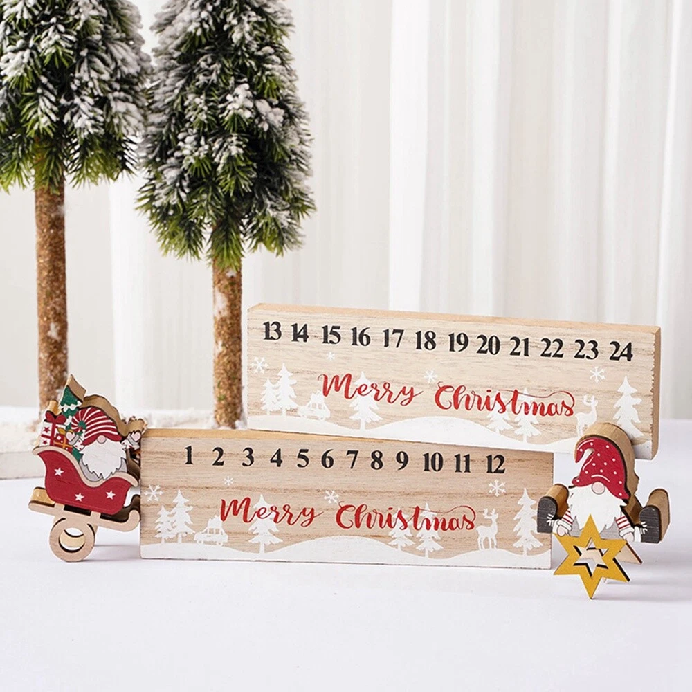 2 PCS Wooden Countdown Decor Ornament Santa-Advent Calendar X6C54525