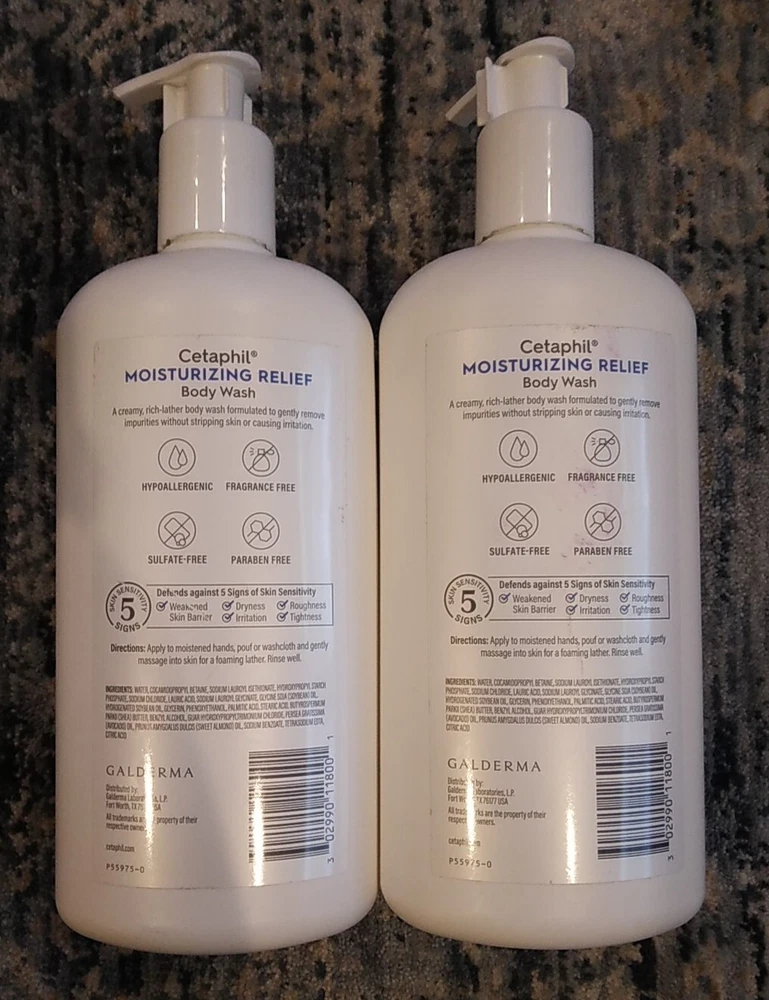 2 PK Cetaphil Moisturizing Body Wash Dry Sensitive Skin Glycerin Shea Butter 20oz.