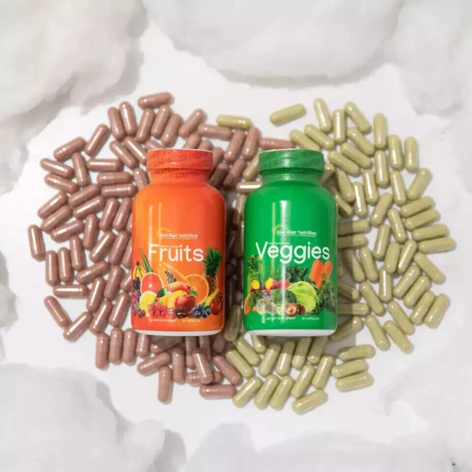 2 Pack, 180 Fruits and 180 Veggies - Whole Food Supplement with Superfood . Safety Information Statements regarding dietary supplements have not been evaluated by the FDA and are not intended to diagnose, treat, cure, or prevent any disease or health condition. Ingredients Broccoli, Cabbage, Carrot, Cauliflower, Cayenne Pepper, Celery Stalk, Garlic, Kale, Onion, Shiitake Mushroom, Soy Bean, Spinach, Sweet Potato, Wheat Grass, Zucchini, Aloe Vera, Apple, Banana, Blueberry, Cherry, Cranberry, Grape, Grapefruit, Lemon, Mango, Orange, Papaya, Pineapple, Raspberry, Strawberry, Tomato. Directions Recommended 6 capsules daily (3 Fruits and 3 Veggies). Legal Disclaimer Statements regarding dietary supplements have not been evaluated by the FDA and are not intended to diagnose, treat, cure, or prevent any disease or health condition. Thanks For Choosing Us.