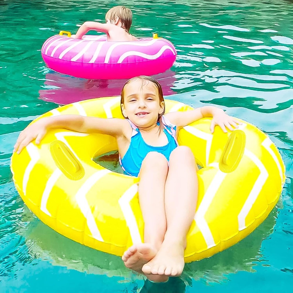 These inflatable pool tubes are a total game-changer for summer fun! The bright yellow and pink colors stand out, and the sturdy handles make them easy to grip while floating. At 39 inches, they’re spacious enough for teens and adults to lounge comfortably. The thick PVC material feels durable, and the included repair patches are a nice bonus. Love the wave design—it adds a cool touch while keeping you stable in the water. Perfect for lazy pool days or just drifting around without a care. Highly recommend for anyone who loves relaxing on the water!