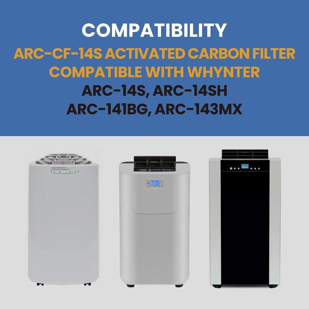 ARC-14S ARC-CF-14S Carbon Filter for Whynter Portable Air Conditioner. The ideal filter to replace in your portable air conditioner is the WHYNTER MOdel number ARC-14S. Fits Portable Air Conditioner Models ARC-14S, ARC-14SH, ARC-141BG AND ARC-143MX. Tip: we use high quality and durable plastic materials, guaranteed to exceed OEM specifications. After-sales service: to provide customers with quality products and services. If you have any questions, please contact us, we will provide you with a satisfactory shopping experience. 【Compatible with】ARC-14S Activated carbon filters Replacement for Whynter ARC-CF-14S filter Portable Air Conditioner Models ARC-14S, ARC-14SH, ARC-141BG AND ARC-143MX. 【Easy to Install】our ARC-14S replacement carbon filters Easier installed,It takes only a minute to easily replace the installation. It saves a lot of time and money. 【Excellent Value】 You will get Replacement for Whynter ARC-CF-14S filter air conditioner filters Replacement Filter 2 pack. 200% more filters than others that only include 1 filter. This complete value pack provides enough clean filters to improve the air in your home.NOTE: It is recommended to replace carbon filters once a year to keep the air clean at all times 【Quality Materials】Our Activated carbon filters use quality materials that have been tested several times and meet OEM standards.It can easily absorb and filter a lot of bad taste, it is a perfect a replacement for a portable AC unit. Size: 15.5"L x 7.5"W x 0.19 "Th 【AFTER BUYING SERVICE】Fast response,super easy to install and clean, quick response, high durability. Buy with confidence, if you have any questions, please contact us for a replacement. We will reply you within 24 hours and help you solve the problem.
