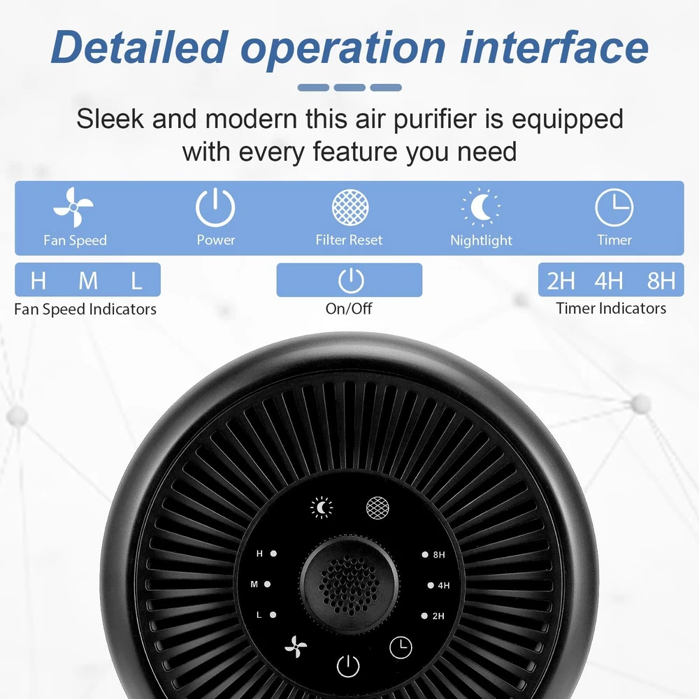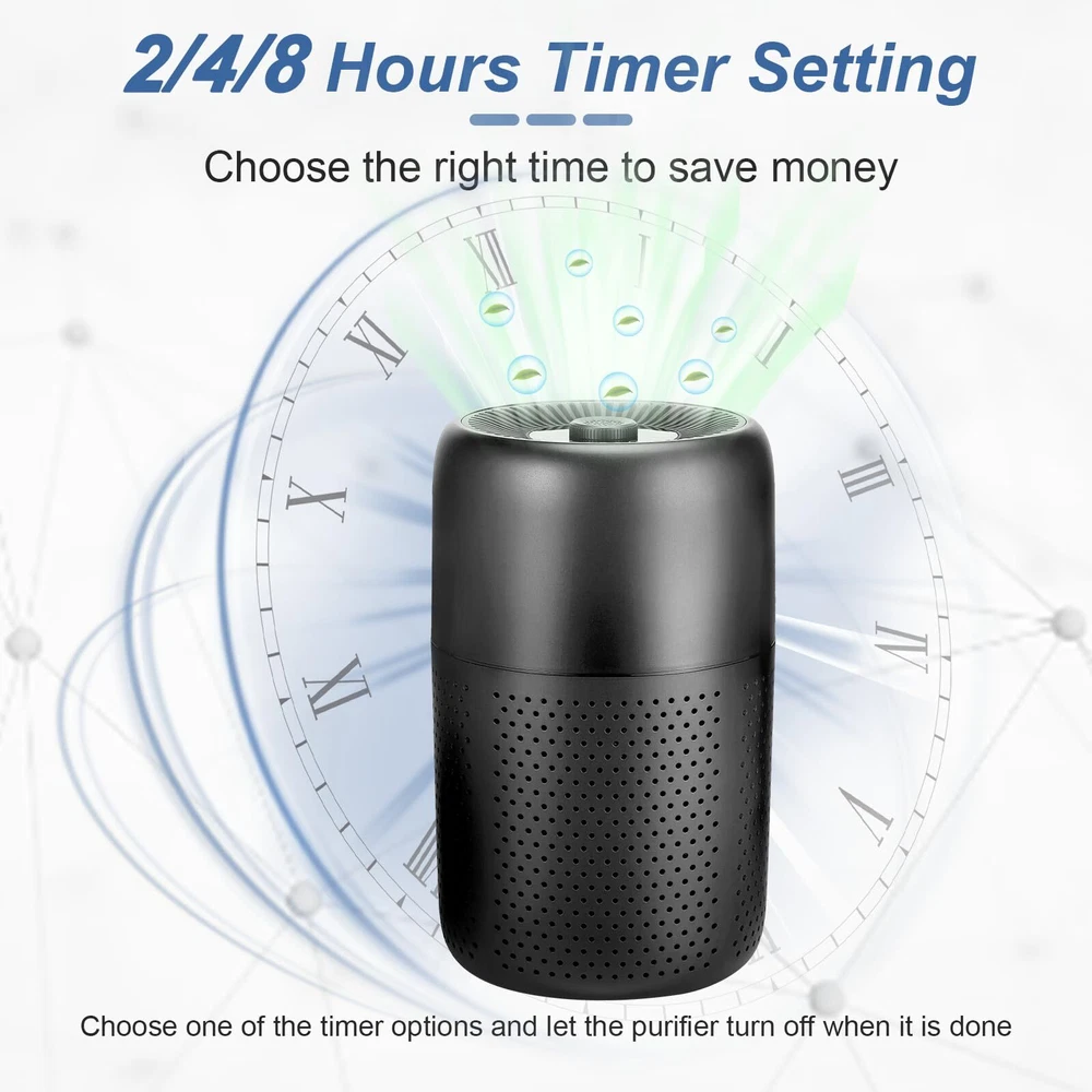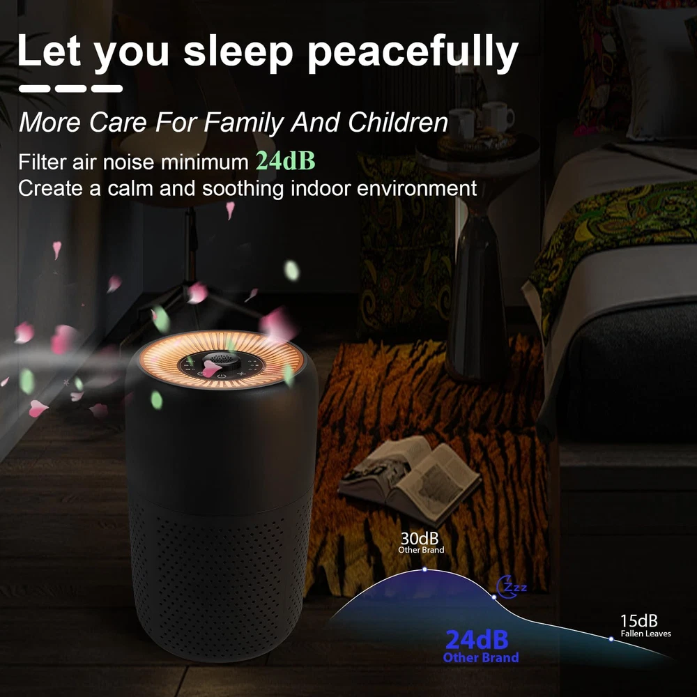 Superior Purification: The P60 air purifier features an H13 HEPA filter,It is beneficial for pet owners, parents of newborns, asthma sufferers, and anyone seeking clean air to breathe,Size:6.3"D*6.3"W*10.2"H. Enjoy Fragrant Air: The air outlet of the purifier includes a groove where you can add 4-5 drops of your favorite essential oil (not included). As the purifier circulates fresh air, the fragrance fills the room, creating a pleasant and healthy environment for you and your family. Low Decibel and Night Light: When the fan is set to the lowest speed, the noise level drops to 24 decibels, ensuring a quiet operation without any noticeable sound. Switch to night light mode, and a warm light will illuminate instead of the harsh bedroom lighting, creating a peaceful and comfortable sleep environment. High Circulation Rate: air purifier adopts 360-degree air intake technology and dual pressurized air ducts, which can freshen the air for a room up to 215 square feet/20 square meters per hour, cover every corner of the room, and promote your health. Official Filter Replacement: Our air purifier after 1500 hours of use. A red indicator light will light up to remind you to change the filter. In order to maintain the purification effect, it is recommended that you search for "B0C5F4P9ZV" to purchase official replacement filters. (Other filter elements are not compatible with P60 air purifiers)