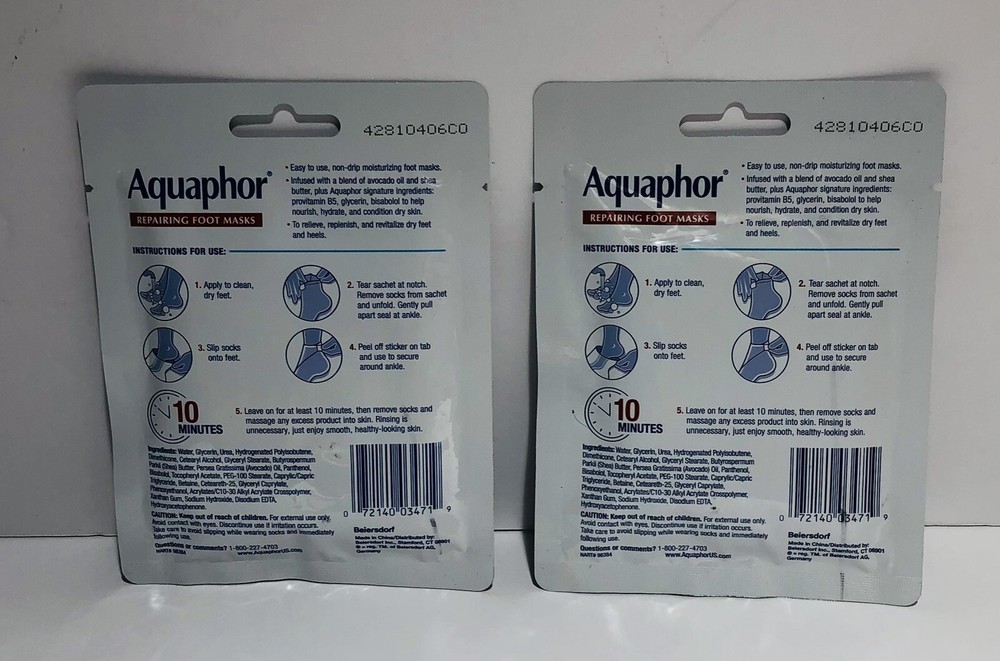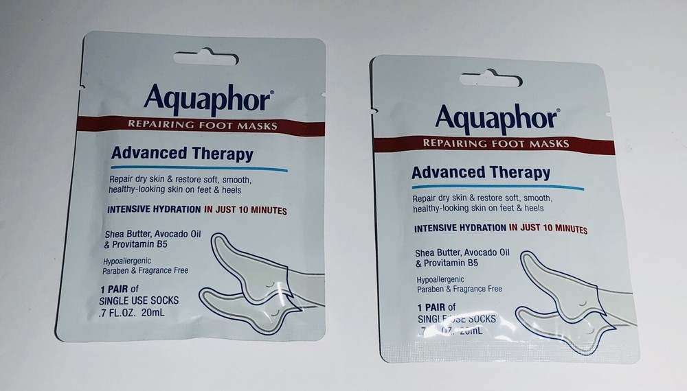 2 Pack Aquaphor Advanced Therapy Repairing Foot Mask- Intensive Hydration. Condition is Brand New. Comes with everything you see in the pictures only. Please view pictures to evaluate for yourself. Shipped via USPS Ground Advantage.