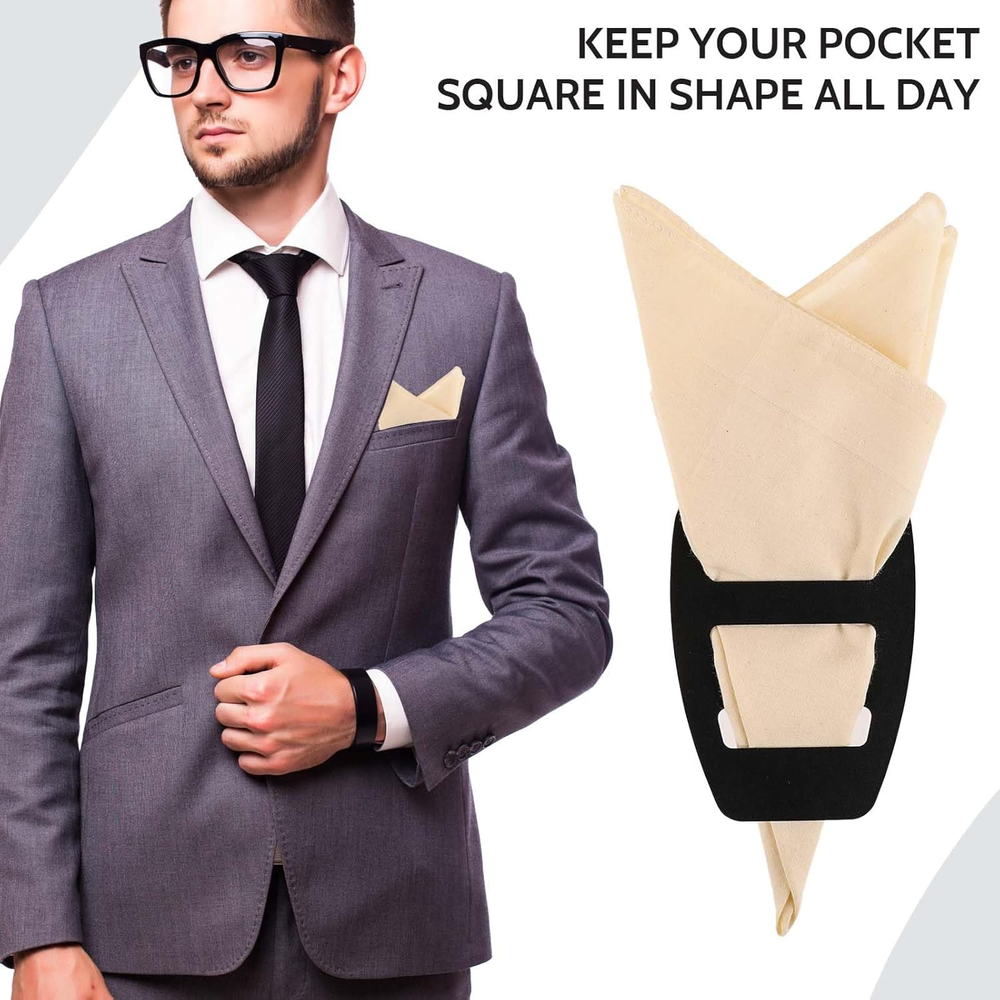 Category : Pocket Square Holder Colour : Black material : plastic Product size : length × width: 12.4 × 8.8 cm List : 2pcs x Pocket Square Holder Function : Pocket square holder, pocket square plastic clip, men's suit handkerchief holder clip, black handkerchief clip, universal for adults in Europe and the United States. Men's pocket squares, suits, tuxedos, vests and evening gown accessories.