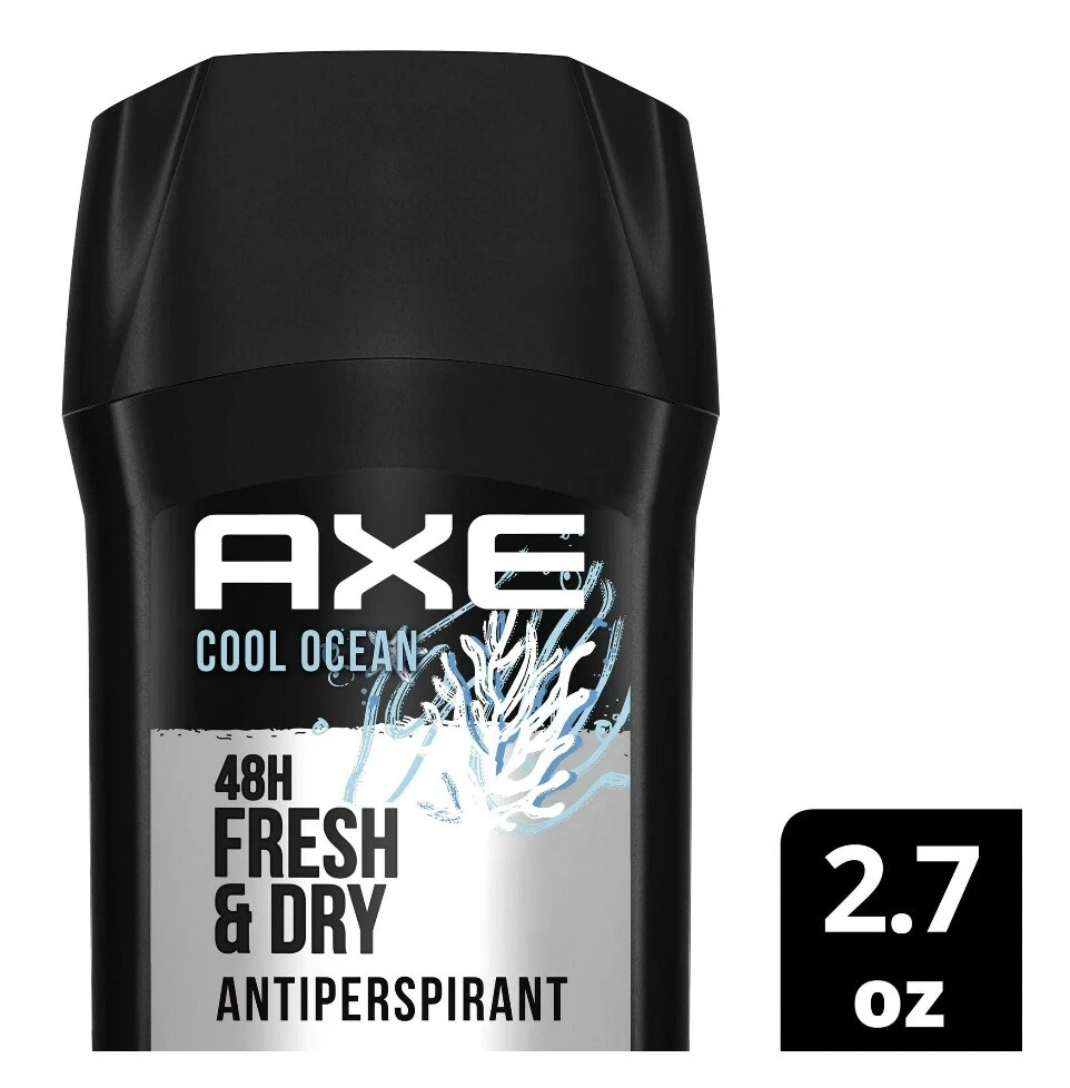 2 Pack Axe Cool Ocean 48H Antiperspirant Deodorant, Sea Mist & Grapefruit, 2.7oz. Axe Cool Ocean Long Lasting Antiperspirant Deodorant Stick, Sea Mist and Grapefruit, Dive into freshness. A scent that feels like endless summer. When opportunity is around every corner, you need a stick deodorant that is going to keep you fresh. With It's 48h High Definition scent and upgraded fragrances, AXE Cool Ocean Deodorant for men has got you covered. An ocean-inspired men's fragrance with light, uplifting essential oils, so you can relax from sunup to sundown. All new AXE Cool Ocean Dual Action Deodorant Stick now features our longest lasting scents ever! Bust odor and smell fresh for 48 hours. Plus. Take care of yourself and the planet. Our video Stick packaging is already made with 66% recycled materials, and by 2025 AXE aims for all our packaging to be recyclable or to include recycled materials. At AXE, we believe that one of the keys to attraction is an irresistible fragrance. We are dedicated to giving you all the tools to ensure that whenever opportunity arises, you smell your absolute best. From our body spray to our shower gels, our Antiperspirants to our deodorants, we are doing everything we can to make sure no one gets left out of the attraction game. All new AXE. The future smells amazing. Smell irresistible all day with all NEW and upgraded AXE Cool Ocean Dual Action Antiperspirant Deodorant for men Anti-sweat, smell fresh with our first Dual Action Antiperspirant for men with enhanced sweat fighters An irresistible smelling Antiperspirant. Let the iconic combo of Cool Ocean scent with Essential oils keep you dry and odor free all day with every swipe Cream deodorant goes on invisible, leaving no white marks or yellow stains Apply AXE Antiperspirant deodorant to clean, dry underarms and feel fresher for longer with every swipe