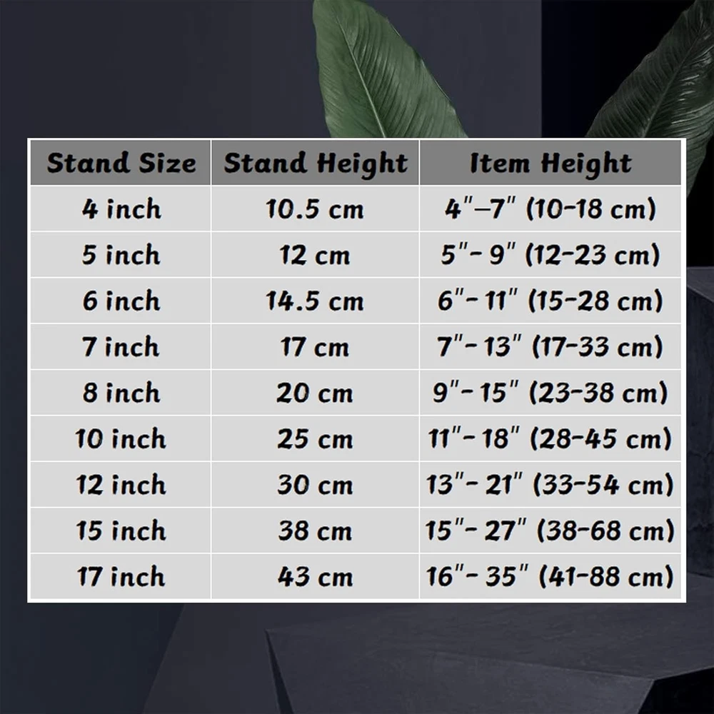 (2 pack) Iron Display Stand, Black Easel Plate 4 inch(2 pack), Product Details Base Type: Pedestal Assembly Required: No Number of Levels: 1 Manufacturer: Artliving UPC: 718040432001 Product Dimensions: 5 x 4 x 0.5 inches Item Weight: 1.76 ounces Item model number: 8541857262 Is Discontinued By Manufacturer: No Form Factor: Sloped Desk Finish types: iron Batteries required: No Color: Black Material: Metal Brand: Artliving Item dimensions L x W x H: 5 x 4 x 0.5 inches Finish Type: iron Curved metal stand to display photos, books, small artwork, collector plates & more! Perfect for holding picture frames, small cookbooks, decorative plates Durable and sturdy stand, built to last. The stands can make focus on your showpiece and not the Display Stand Recommed: The 4 Inch is small and lightweight,so it suitable for small item,like cookie,card and small artwork.If you want to hold a plate,6-8 Inch is more suitable for plate.It depands on the diameter of the plate.Also,the 4inch and 5 inch are all suitable for the small and lightweight plate.If you want to hold a picture frame,8-15 Inch will be suitable.It depands on the hight of the picture frame.the item larger than the stand 1-3 inch is perfect.