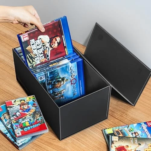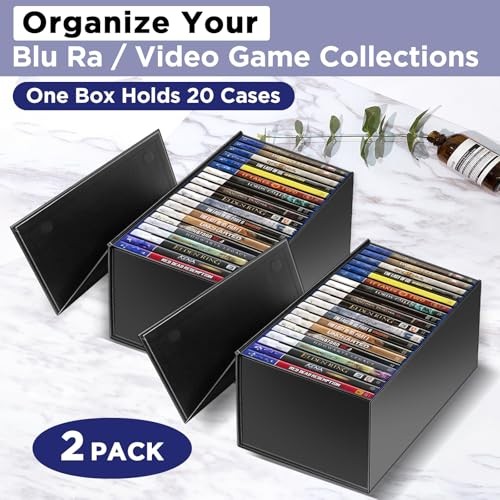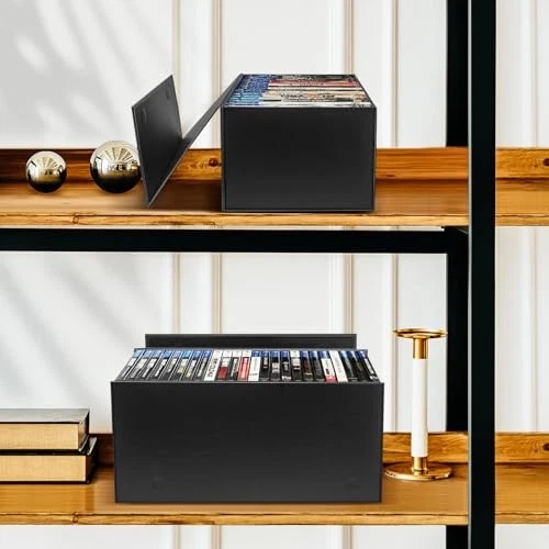 Return Policy Fast Delivery Trusted seller 2 Pack Blu Ray DVD Storage Box for Steelbook Storage, Movie Organizers, Blu Ray Holder, Video Game Storage Cases Product Description 2 Pack Blu rays Organizer Box - Package comes 2 pack of containers, size is 12.4x7.2x5.4 inches, compactable with steelbooks, blu rays and video games. Each container holds up to 20 full-size Blu Ray DVDs or video game cases. (Notice: Designed for Blu-Rays, NOT suitable for normal DVD cases, Xbox 360.) Quality - Every box for Blu Ray and video game storage features heavy-duty panels with industrial-grade stickers, sturdy for long term use. Organize in Style - Black appearance with exquisite grain, the storage box is understated luxury and beautiful. It keeps all your Blu Ray DVDs and video games neatly stored away while adding a tasteful accent to the home or office. Easy to Assemble - This video game storage case arrives flat and can be put together easily. Just peel off 4-corner sticker and hold firm for seconds. Archival Storage - Easily organize your movie theater-level collection of all the classics! Strong Magnetic Closure - The rectangular storage box has a concealed and sturdy magnetic closure that allows the box to be easily opened and closed repeatedly. Dust Proof: Has a cover to protect your collections from dust, suitable for infrequently viewed steelbooks, games and blu rays. Shipping Returns Payment Shipping Shipping is FREE to all addresses other than APO/PO boxes in the lower 48 states. All our stock ships from US-based warehouses. Shipped via USPS or UPS (depending on location and package weight) Unless stated otherwise, all orders will ship within 24-72 hours of your payment being processed. Check our feedback to see the great reviews of FAST shipping we offer. Returns Seller does not accept returns Payment We currently accept payment via eBay managed payments only. Once payment is cleared, we will dispatch your shipment within 1-3 business days. Please refer to the "Shipping" tab for more information regarding shipping speed to your destination.