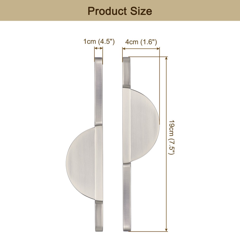 Document Advantage:The cabinet drawers handles are made of aluminum alloy and have good rust and corrosion resistance.The surface of these handles is matte black finish, has good wear resistance, and will not fade for a long time .Edge design, no-sharp and rounded edges, soft touch. Semi-circular design for easy operation and comfortable grip.Each handle has matching long screws and short screws. Make sure to fit cabinets of different thicknesses.This cabinet handle is suitable for cabinet, closet, cupboard, drawer, dresser, door, wardrobe. Specification:Material: Aluminum alloyColor: SilverSize: 19 cm x 1 cm x 4 cm/7.5"L x 0.4"W x 1.6"HPackage Included: 2 pcs x Kitchen Cabinet HandlesNote: Manual measurement, please allow slight errors in size. The color may have a slight difference due to different screen displays. 2 Pack Brushed Silver Cabinet Pulls Semicircle Cabinet Handles 2-1/2 Inch (64mm) Advantage : The cabinet drawers handles are made of aluminum alloy and have good rust and corrosion resistance. The surface of these handles is matte black finish, has good wear resistance, and will not fade for a long time . Edge design, no-sharp and rounded edges, soft touch. Semi-circular design for easy operation and comfortable grip. Each handle has matching long screws and short screws. Make sure to fit cabinets of different thicknesses. This cabinet handle is suitable for cabinet, closet, cupboard, drawer, dresser, door, wardrobe. Specification : Material: Aluminum alloy Color: Silver Size: 19 cm x 1 cm x 4 cm/7.5"L x 0.4"W x 1.6"H Package Included: 2 pcs x Kitchen Cabinet Handles Note: Manual measurement, please allow slight errors in size. The color may have a slight difference due to different screen displays. Hot Item Payment 1.We accept eBay payment . 2.Payment must be received within 7 business days of auction closing. Shipping 1.We ship to your eBay or Paypal address. Please make sure your eBay and Paypal address is correct before you pay. 2.Items will be shipped within 1-3 business day when we received payment. 3.Delivery time depends on destination and other factors. Description Policy 2 Pack Brushed Silver Cabinet Pulls Semicircle Cabinet Handles 2-1/2 Inch (64mm) Advantage : The cabinet drawers handles are made of aluminum alloy and have good rust and corrosion resistance. The surface of these handles is matte black finish, has good wear resistance, and will not fade for a long time . Edge design, no-sharp and rounded edges, soft touch. Semi-circular design for easy operation and comfortable grip. Each handle has matching long screws and short screws. Make sure to fit cabinets of different thicknesses. This cabinet handle is suitable for cabinet, closet, cupboard, drawer, dresser, door, wardrobe. Specification : Material: Aluminum alloy Color: Silver Size: 19 cm x 1 cm x 4 cm/7.5"L x 0.4"W x 1.6"H Package Included: 2 pcs x Kitchen Cabinet Handles Note: Manual measurement, please allow slight errors in size. The color may have a slight difference due to different screen displays. Hot Item Payment 1.We accept eBay payment . 2.Payment must be received within 7 business days of auction closing. Shipping 1.We ship to your eBay or Paypal address. Please make sure your eBay and Paypal address is correct before you pay. 2.Items will be shipped within 1-3 business day when we received payment. 3.Delivery time depends on destination and other factors.
