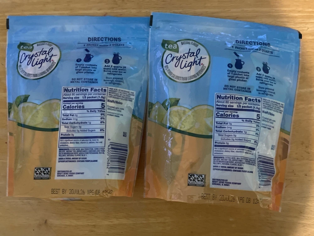 2 Pack- Crystal Light Natural Lemon Iced Tea, 16 packets 16 packs each - for a total of 32 packets all together - 2 packs of crystal light, natural lemon iced tea - New and sealed - Best offers are welcome - expiration date is July 20, 2026