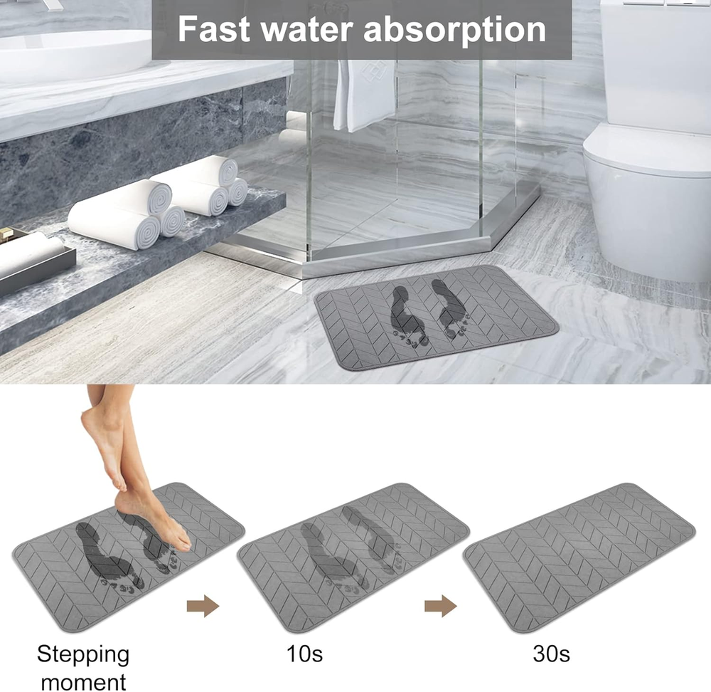 Store New Arrivals Add to Favorite View Feedback Contact Fast deliveries to the customer's home Quality customer service John Make the customers happy! 2 Pack Diatomaceous Earth Shower Mat, Stone Bath Mat, Nonslip Super Absorbent Fast-Drying Hard Bath Mat for Bathroom Shower Floor, 24 X 16 Inch, Grey Arrow Design Description 1.Please Note: this bath stone mat is Hard and Sleek, is not soft and fluffy, not like typical soft rug.You will be like stepping on a sturdy earth plate and a cool slate like STONE. 2.Strong Absorption&Quick Drying: Unlike traditional cotton and fabric bath mats, this Diatomite Earth Mat made up of all natural micro pores, can quickly soak up water, and gets dry in a few minutes, keeps your floor dry and clean. Stylish Japanese design that can be used as a home decor. 3.What You Get- 2PCS hard foot mats, with a rubber Anti-Slip Mat and sand paper. Size: 23.62 x 15.35 inch.For long-time use, please put the mat in a well-ventilated place to air dry regular. 4. Anti-Slip:Put the Rubber Anti-Slip Mat under this mat to prevent skidding. 5. Easy to Clean - Compared to traditional bath mat, no daily washing needed. When it get stains, just wash it with running water or wipe with a wet cloth, or use sandpaper gently grinding the surface when necessary, then air dry. Our Diatomaceous Earth bath mat will quickly refresh itself with excellent absorbent performance. 6. If the product is damaged, just contact us for free replacement Notice 1. The floor mat is made of diatom mud, it is hard rather than soft. Since this diatomite bath mat is hard, please avoid hitting the mat when you step on it. 2.If you feel micronized powders on the surface, it is not a quality issue but a normal phenomenon of the productive process. You can use damp cloth and lightly rub away. 3.Please put the mat in a well-ventilated place to air dry and do not expose it directly under sunlight for a long time. 4.Do not use detergents containing surfactants and dip into water. 5.Do not step on this bath mat with your shoes, otherwise the stains will be sucked. 6.Do not use on the uneven ground or soft ground and also not on the sharp object. Item model number 1 Color Dark Grey Product Dimensions 24"L x 16"W Material Stone Bath Mat Item Weight 9.53 pounds Shape Square Size 24" x 16" (Square) ABOUT US We offer the best prices around on high quality products. Our E-store includes media such as books, movies, music and games while offering electronics, toys, sporting apparel, clothing, tools, general home, garden items and more. SHIPPING We are always working hard to ensure your package arrives as soon as possible. Please understand that some factors like weather, high postal traffic, and the performance of shipping companies are outside of our control. We offer free shipping to the lower 48 states and ship within 2 business days of payment, usually sooner. We do not accept P.O. Boxes. Please provide a physical address. For shipping outside of the continental USA, we only use eBay's Global Shipping Program. The item is shipped to KY and then sent to the rest of the world. International customers are responsible for all duties and taxes. Continue to 'check out' to calculate costs for shipping the item to your country. Messages regarding eBay's Global Shipping Program MUST be directed at eBay EXCLUSIVELY. RETURNS We offer a 30-Day Return Policy on items in which you are not completely satisfied with. You have the option of a full-refund or an exchange of the item. No returns are available on items shipped outside of the USA PAYMENT We accept PayPal. CONTACT US This page content is yet to come Please ad us to your favorite seller and visit again later Thank You CUSTOMER SATISFACTION We try our very best to make sure every customer is completely satisfied. If there's a problem, message us! We're happy to help. WE ACCEPT