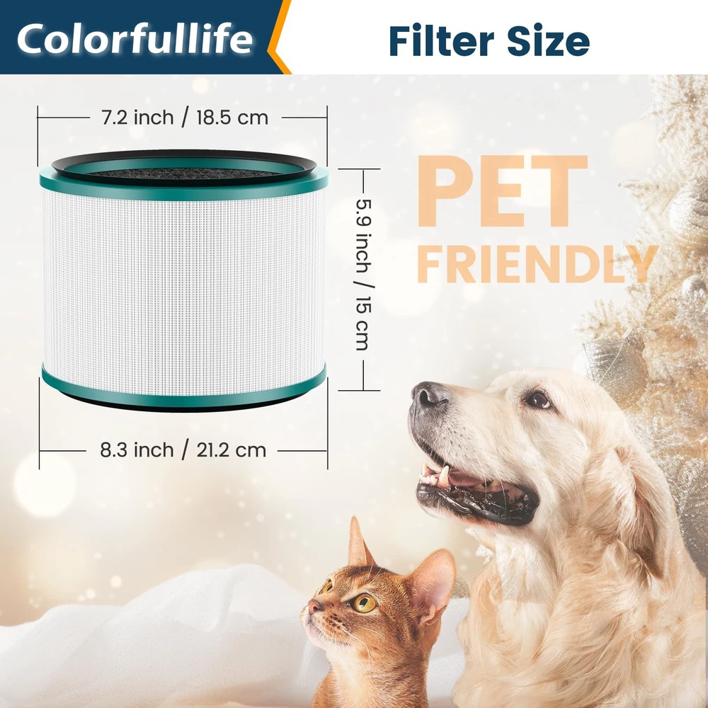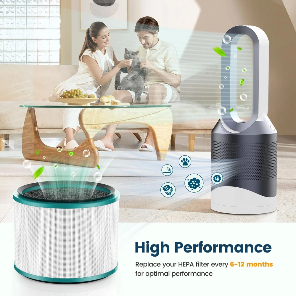 Replacement Filter for Dyson HP01, HP02, DP01 Desk Purifiers for Dyson Pure Hot Cool Link Air Purifier . (Part numbers: 305214-01, 308033-01, 308034-01, 309423-01, 308404-01) compatible with Dyson Pure Hot+Coollink and for Dyson Pure Coollink,compatible with all HP01, HP02, DP01 & DP03. ( Please verify the height of your filter to ensure that this is the correct filter ). True HEPA filter captures up to 99.97% of particles as small as 0.1 microns in size from your indoor air. The inner activated carbon layer won't re-release particles or odors back into the air. Recommended to replace the filter on average 6 months or dependent on usage. Package inclde 2 filter and 1 brush