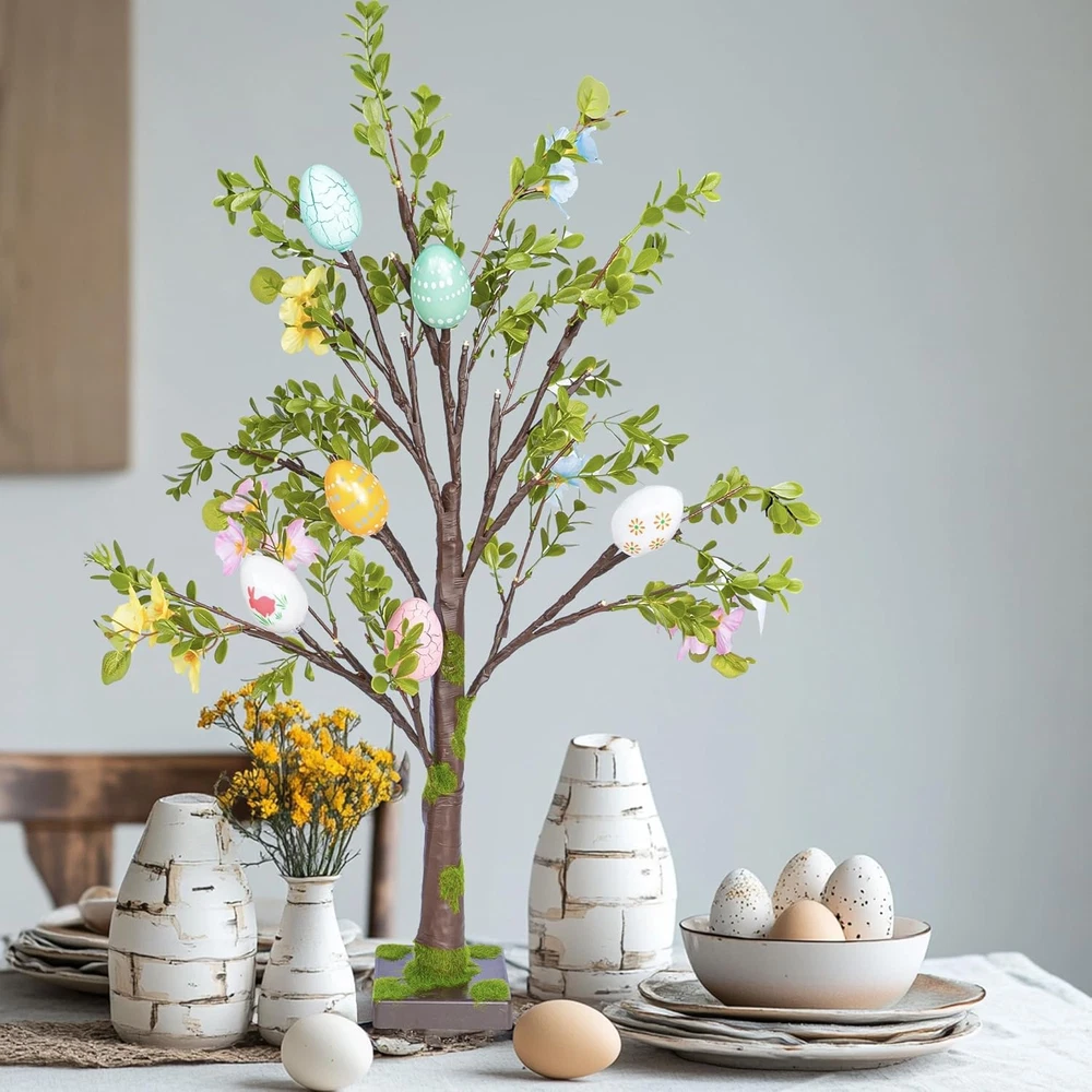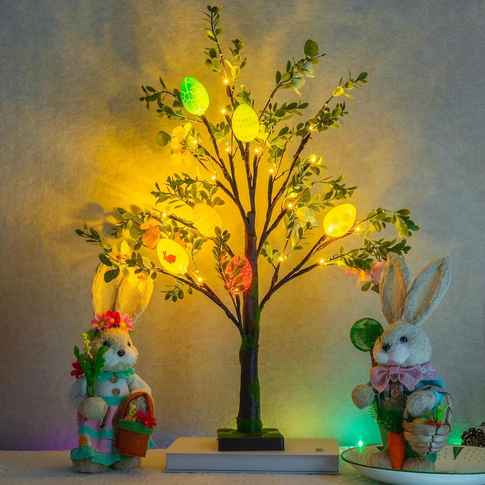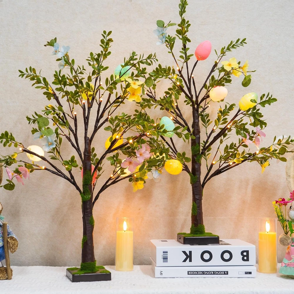 Store New Arrivals Add to Favorite View Feedback Contact Fast deliveries to the customer's home Quality customer service John Make the customers happy! 2 Pack Easter Lighted Tree Decoration, 26 Inch 24 LED Battery Operated Pre-Lit Egg Tree with Timer, Easter Artificial Tree for Indoor Spring Party Home Tabletop Easter Decor Description Easter Tree Decor: Brighten up your Easter with this pre-lit Easter trees! The 26.8 inch trees feature colorful eggs and green artificial leaves. The vibrant colors and intricate designs of the eggs add a festive and cheerful touch to your Easter decorations. Battery Powered: This lighted Easter tree is powered by 3 AA batteries (not included) and features a switch located on the side of the base. Without the need for electrical outlets, making it perfect for tabletop displays or any indoor setting. Bright Lights with Timer: Each Easter tree comes with 24 warm white LED lights, creating a cozy and inviting atmosphere. Equipped with a convenient timer function (6 hours ON / 18 hours OFF), eliminate the hassle of turning them on and off manually every day. Realistic Artificial Leaves: The trees feature realistic artificial leaves that mimic the look of a fresh spring tree. The durable materials ensure that the trees will remain in excellent condition for years to come, allowing you to reuse them for future Easter celebrations. Perfect for Easter Parties: Ideal for enhancing the ambiance of your home during Easter or any spring-themed party. The trees suitable for tabletops, mantels, or any small space, adding a delightful touch of Easter charm to your home decor. Product Description Easter Tree Decor Brighten up your Easter with this pre-lit Easter trees! Battery Powered This lighted Easter tree is powered by 3 AA batteries (not included) Timer Equipped with a convenient timer function (6 hours ON / 18 hours OFF). Realistic Artificial Leaves The trees feature realistic artificial leaves that mimic the look of a fresh spring tree. 1 Easter Tree Decor 2 Battery Powered 3 Timer 4 Artificial Leaves Item model number Colorful Egg Tree Item Package Quantity 1 Product Dimensions 3"D x 5"W x 4"H Number of Items 1 Built-in Light Yes Color Multicolor Material Polyvinyl Chloride Item Weight 1.94 pounds Recommended Uses For Product Indoor Seasons Spring Included Components Egg, Tree Special Feature Prelit Light Color Warm White Occasion Easter ABOUT US We offer the best prices around on high quality products. Our E-store includes media such as books, movies, music and games while offering electronics, toys, sporting apparel, clothing, tools, general home, garden items and more. SHIPPING We are always working hard to ensure your package arrives as soon as possible. Please understand that some factors like weather, high postal traffic, and the performance of shipping companies are outside of our control. We offer free shipping to the lower 48 states and ship within 2 business days of payment, usually sooner. We do not accept P.O. Boxes. Please provide a physical address. For shipping outside of the continental USA, we only use eBay's Global Shipping Program. The item is shipped to KY and then sent to the rest of the world. International customers are responsible for all duties and taxes. Continue to 'check out' to calculate costs for shipping the item to your country. Messages regarding eBay's Global Shipping Program MUST be directed at eBay EXCLUSIVELY. RETURNS We offer a 30-Day Return Policy on items in which you are not completely satisfied with. You have the option of a full-refund or an exchange of the item. No returns are available on items shipped outside of the USA PAYMENT We accept PayPal. CONTACT US This page content is yet to come Please ad us to your favorite seller and visit again later Thank You CUSTOMER SATISFACTION We try our very best to make sure every customer is completely satisfied. If there's a problem, message us! We're happy to help. WE ACCEPT