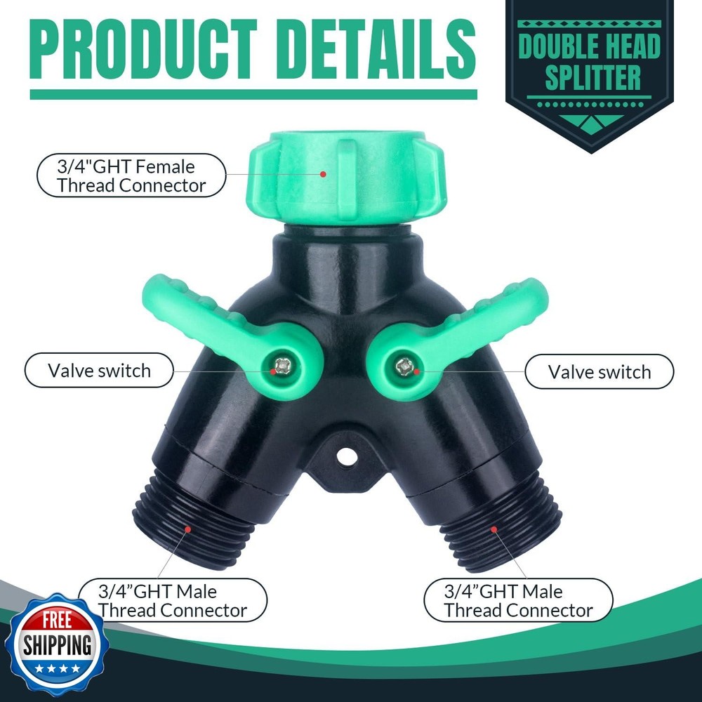 2 Pack Garden Hose Splitter 2 Ways Water Hose Splitter Heavy Duty Plastic 3/4" Hose Y Splitter Outdoor Faucet Splitter with Leak Proof Tape and 4 Extra Rubber Gaskets Features New Upgraded Material: This product is made of new upgraded heavy duty plastic, which is more sturdy, durable, resistant to weathering and aging, and can be used for a long time both indoors and outdoors 2-Way Hose Splitter: The garden hose Splitter has 2 connectors and 2 valves. After using the water Splitter, it can easily convert one faucet into two high flow water sources. Each distribution port has an independent valve controller that can adjust the water flow and enhance user convenience Easy Installation: The garden hose splitter is threaded and securely connected, requiring no tools and easy to install. Bidirectional irrigation, durable. When the faucet diverter is connected to the faucet, simply rotate the connector to install Widely Used: Connect multiple hose to work together, irrigate plants and gardens, cover a larger area, and water efficiently. The camping trip splitter expands the water range of the RV. At the same time, water the plants in the yard or while washing the car. Y Splitter can also be used for various irrigation systems, including atomization systems, sprinkler systems, and drip irrigation systems Leak Free and Split Valve: Long and smooth threads with rubber rings on the internal thread end, making leakage a long forgotten experience Shipping Free & Fast Shipping: We offer free shipping to most of the USA with a normal delivery time of 3-7 days. However, due to the current situation, additional delivery time (up to 3 weeks) may be required for some items. Alternative Carriers: We may use alternative carriers (e.g., USPS, FedEx, UPS) to ensure your package arrives safely and on time. Due to the use of multiple carriers, we are unable to provide a tracking number automatically. Handling Time: Orders are processed and shipped within 1-2 business days of receiving cleared payment. Shipping Restrictions: Shipping to Alaska, Hawaii, Puerto Rico, Guam, and other US territories may incur shipping charges or delivery restrictions. Please contact us before ordering, or your order can be refunded/cancelled. State Restrictions: Certain items may not be shipped to California due to state regulations. Contact for Tracking Updates: If you require tracking updates or have any concerns about the delivery of your order, please feel free to contact us, and we will be happy to assist you. Return Policy 30-Day Hassle-Free Returns: If you are not completely satisfied with your purchase, you can return the item for free within 30 days of receiving it for a full refund or exchange. Easy Return Process: Contact us, and we will provide you with a prepaid return shipping label and detailed instructions. No Restocking Fee: There are no restocking fees for returns. However, the buyer is responsible for return shipping costs if the return is not due to a seller"s error. Refund Processing: Refunds will be processed within 1 business day of receiving the returned item in its original condition. Feedback Your feedback is extremely important to us. We strive to provide the best products and customer service possible. If you are satisfied with your purchase, please take a moment to leave us a positive review. If you have any concerns or issues with your order, please contact us before leaving negative feedback. We are committed to resolving any problems and ensuring your satisfaction. Contact Us If you have any questions or concerns, please feel free to reach out to our customer support team. You can contact us through the eBay messaging system. We are available Monday to Friday, 9:00 am to 5:00 pm EST, and we will do our best to respond to your inquiry within 24 hours. Thank you for supporting our small family business!