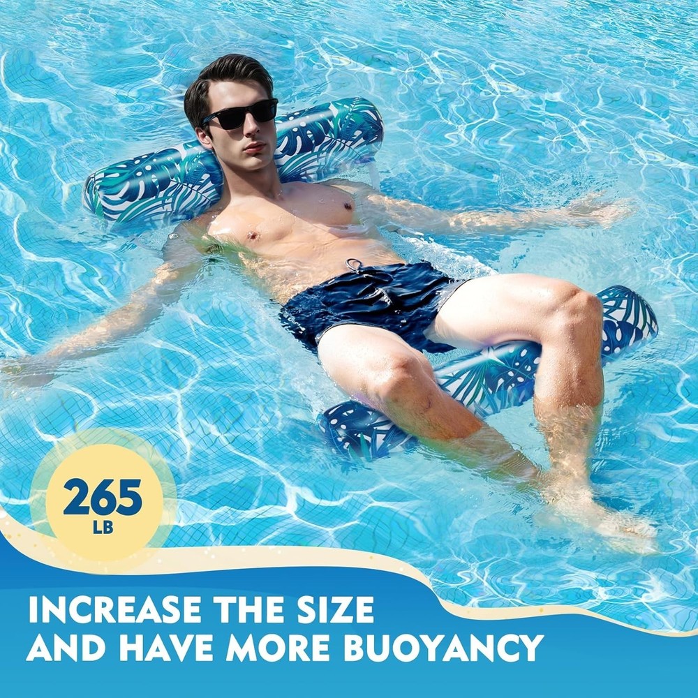 100% Money Back Guarantee if you are not satisfied with your purchase! ____________________ Description: Pool Floats - 2 Pack Pool Float Adult, 4-in-1 Multi-Purpose Water Hammock, Floaties for Adults, Inflatable Pool Floats for Vacation Fun and Rest ● Comfortable Pool Floats - Our pool floaties are easy to get on and off in water. No need to jump or flop. The headrest and footrest provide good support and comfort. You can sit or lie down on this multi-functional pool hammock float to relax and have fun in summer. ● High Quality Materials - Crafted with thick and durable PVC materials, our pool hammock floats for adults are tear-resistant, lightweight, and effortlessly cleanable. These high-quality pool floats adults are designed for long-lasting use and are ideal for travel. ● 2 Pack Floaties for Adults - Each Hammock Pool Float measures 52" x 28" and supports up to 265 lbs. Suitable for individuals between 4 and 6 feet tall. NOTE: For users 13 and older; under 13s should use it with adult supervision. ● 4-in-1 Pool Float - Easily transform it into a hammock, lounge chair, drifter or exercise saddle. You can adjust it to the comfortable position you want to while on the pool floaties. ● Easy to Carry - Our foldable water hammock for adults is incredibly portable. The inflatable part of the Pool Hammock Float features a leak-proof design and can be easily inflated even with just your mouth, making it perfect for a variety of leisure water activities. Take it out and enjoy the fun! 100% Money Back Guarantee: We offer 30 Day Money Back Guarantee from the day you purchased if you’re not satisfied with your product. If you have any questions about our products, please contact us as soon as possible. Customer satisfaction is our absolute priority. Shipping: We are always working hard to ensure your package arrives as soon as possible. Please understand that some factors like weather, high postal traffic, and the performance of shipping companies are outside of our control. We offer free shipping to the lower 48 states and ship within 3 business days of payment, usually sooner. We do not accept P.O. Boxes. Please provide a physical address. You will be notified via eBay messages as soon as your items ship. Delivery: We will ship out the item in 2-3 working day after receiving the payment. Usually the delivery takes 2-5 business days. If you don't receive the items after 10 days, please feel free to contact us. You will get a replacement or a full refund. Please DO NOT open a return request or leave negative feedback without asking for help. Returns (Get Free Return Label): We offer a 30-Day Return Policy on defective/wrong items or items which you are not completely satisfied with. You have the option for a full-refund or an exchange of the item. No need to buy eBay return label. Contact us via eBay messages and get free return label. Returned items must be in all of the original packaging and include all of the original accessories or items that came with it. The item and package should be in original condition. Contact Us: Any queries or issues incurred, please feel free to contact us via eBay message, we will get back to you within 24 hours. Please DO NOT open a return request or leave negative feedback without asking for help. Feedback: Your feedback is very important to us. After you get your package and you are satisfied with our service, please leave us positive feedback. We are highly appreciated for your POSITIVE feedback and 5 stars. Enjoy shopping.