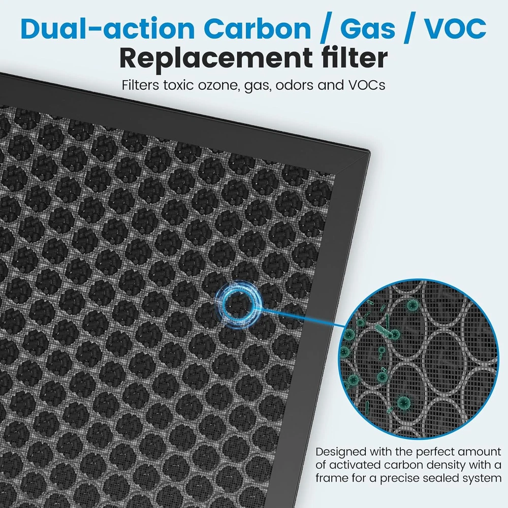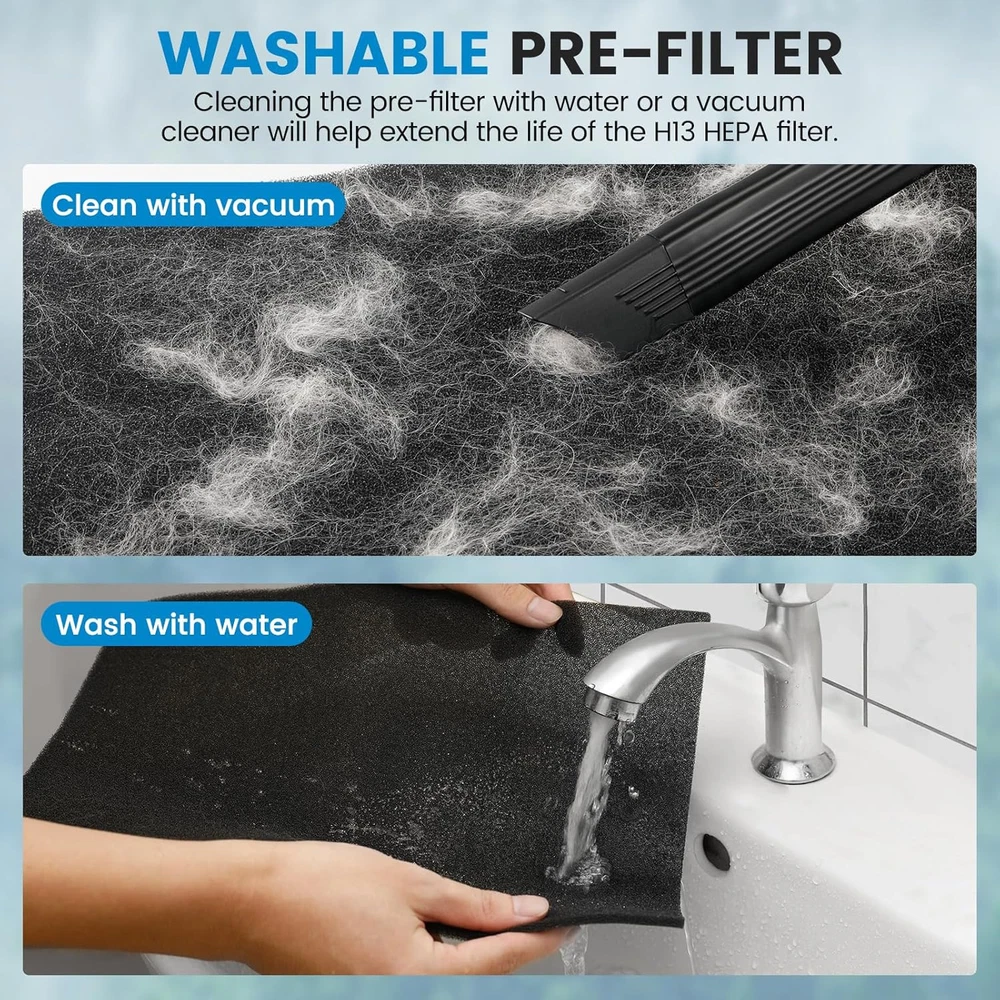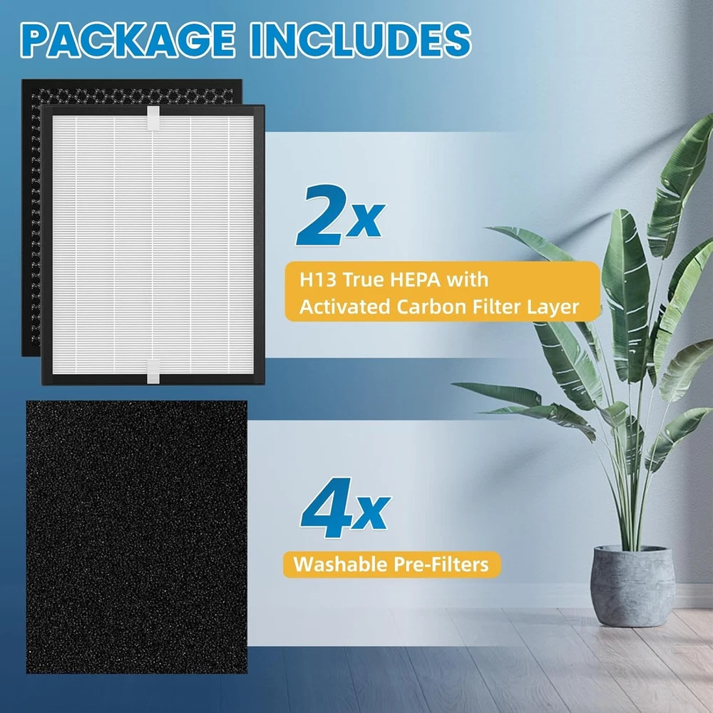 2 Pack KJ190L Filter Replacement Compatible with MOOKA KJ190L Air Purifier For Home Large Room 2000 Ft², 2 H13 HEPA Filters and 4 Washable Pre-Filters Pet Air Purifier Filters for Bedroom Product Details Brand Name: iSingo Model Info: KJ190L Item Weight: 3.16 pounds Product Dimensions: 13.4 x 1.18 x 10.6 inches Item model number: KJ190L Part Number: iSingo Compatible Device: Compatible with Mooka KJ190L Air Purifier Material Type: 2 H13 HEPA Filters and 4 Washable Pre-Filters Included Components: 2 Pack H13 HEPA and 4 Pack Washable Pre-Filters (2+4) Batteries Included?: No Batteries Required?: No Brand: iSingo Material: 2 H13 HEPA Filters and 4 Washable Pre-Filters Product Dimensions: 13.4"L x 1.18"W x 10.6"Th Compatible Devices: Compatible with Mooka KJ190L Air Purifier Number of Items: 1 Manufacturer: iSingo Product Grade: new Unit Count: 2.0 Count 【3-STAGE ADVANCED FILTRATION SYSTEM】KJ190L H13 True HEPA filter for MOOKA KJ190L with 3-in-1 H13 True HEPA Filtration System ( ① Washable Pre-Filters ②H13 Grade True HEPA Filter ③Dual-action Activated Carbon / Gas / VOC Replacement Filter ) to filter 99.97% of air-borne particles down to 0.3 microns in size and adopt advanced lower energy consumption and lower density structure technology, with lower wind resistance, higher efficiency and less pressure to ensure maximum filtration to improve air quality in your living space and promote better health. 【SUPERIOR FILTRATION WITH H13 HEPA AND ACTIVATED CARBON】Our H13 HEPA filter is crafted from finely woven organic fibers, offering exceptional particle capture large adsorption capacity, and excellent high purification efficiency. It effectively filters particles as small as 0.3 microns. The upgraded activated carbon filter, with an increased number of activated carbon pellets, enhances the absorption of unpleasant odors such as pet smells, fumes, and VOCs, resulting in higher and more effective purification efficiency, which ensures energy saving and a longer service life. 【WASHABLE FILTER - EXTEND FILTER LIFE】The pre-filter of this KL190L filter features the latest washable design, allowing it to be cleaned with water or a vacuum cleaner. Regular cleaning of the pre-filter helps extend the lifespan of the H13 HEPA filter and the air purifier, enhancing cost-effectiveness and saving you money. Additionally, our filter is pet-friendly, utilizing medical-grade H13 True HEPA technology, specifically tailored for pollen, pet dander, and fur. It also includes special treatment for pollen and pet odors, promoting a harmonious coexistence between you and your pets.