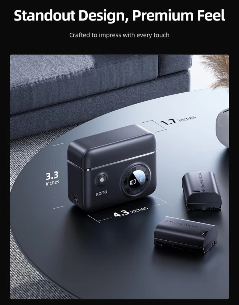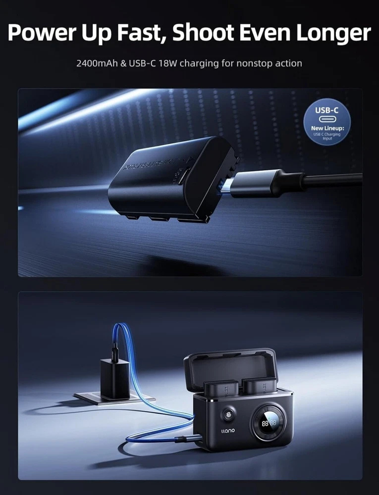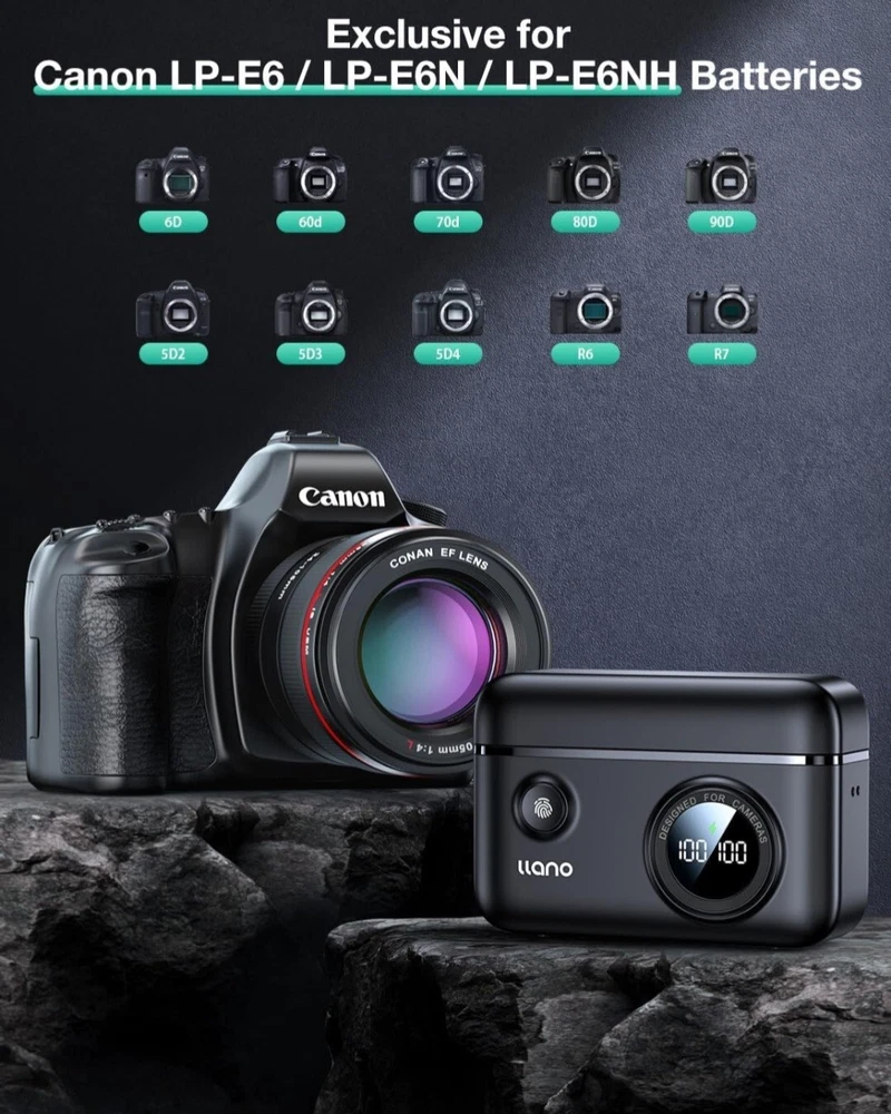 Brand new in the box. We are including a "copy and paste" below of the details/specifications from the manufacturer's listing for this specific item. Please note we found this information online. We are selling this item on consignment, which means we only have one on hand, and no other colors or sizes are available. We are not a licensed reseller or warehouse. ------------------------------------------------ 【Versatile Dual-Slot Charger】The double-slot design can charge 2 LP-E6NH batteries at the same time, and the Intelligent LCD screen makes you understand the current charging status of each battery. It also could as a storage case to store two packs batteries to protect batteries from impact, dust, and debris. What's more, it also features SD card holders. Space-saving and convient to your trip. 【Two LP-E6NH Rechargeable Batteries】Each LP-E6NH battery has 2400mAh REAL CAPACITY, performs the same as the original LP-E6NH battery, rated at 7.2V, 17.3Wh, providing long and reliable power for your cameras without any memory effect. The Perfect Choice for photographers, vloggers, and filmmakers who engage in outdoor creation and help them capture every precious moment. 【Safe and Reliable】llano LP-E6NH battery and charger are made of high quality ABS and PC materials to ensure fine touch and durability. Via CE/FCC/RoHS Certifications, tested by manufacturer to match OEM products. Built-in multiple protections (over-voltage, over-current, short-circuit, high-temperature, over-charging) ensure reassuring safety. 【Perfect Compatibility】llano LP-E6NH battery are fully fits for Canon original camera and charger, fully decoded and no memory effect. Replacement battery are compatible for Canon EOS R5,R5 C R6 Mark II, 5D 6D 7D Mark II III IV, 5DS, 60D, 70D, 80D, 90D Digital Cameras, and more. llano provides 24h customer service, any question or advice please contact us. 【Efficient Charging Process】This LP-E6NH battery charger set includes 2*2400mAh LP-E6NH batteries, 1*dual-slot battery charger, 1*USB-C charging cable, 1*Lanyard and 1*user manual. A Type-C port power up your camera's batteries, with a good-charging efficiency, only 2 hours to fully charge a LP-E6NH battery. Which can also be charged by connecting to a wall charger, car adapter, mobile power supply and so on.