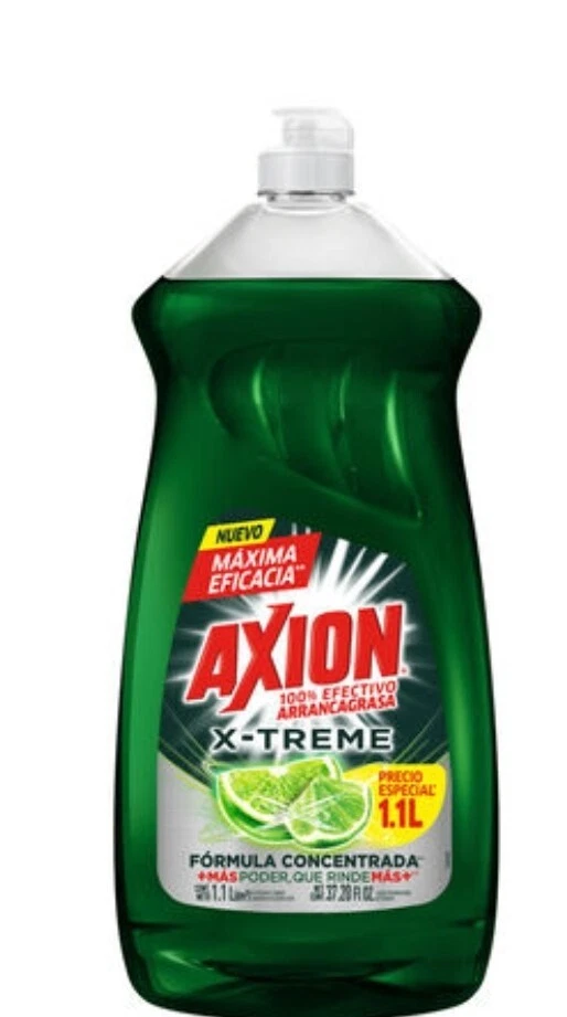 This is a 2-pack of Axion X-tream dishwashing liquid soap in lemon scent. Each bottle has a capacity of 1.1 liters, providing a total of 105 washes per bottle. The liquid soap is biodegradable, animal cruelty-free, and eco-friendly. It features an easy grip design for convenience. Ideal for washing dishes effectively.