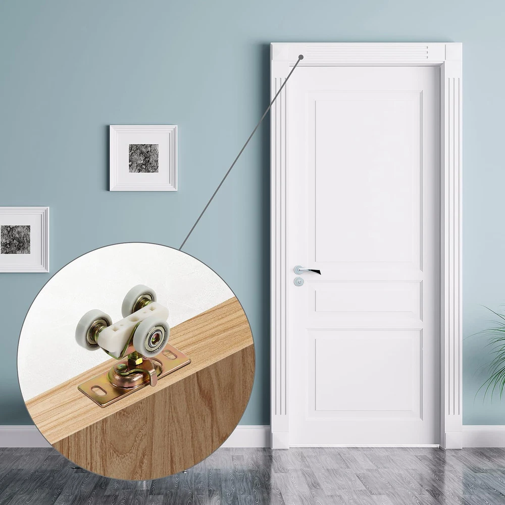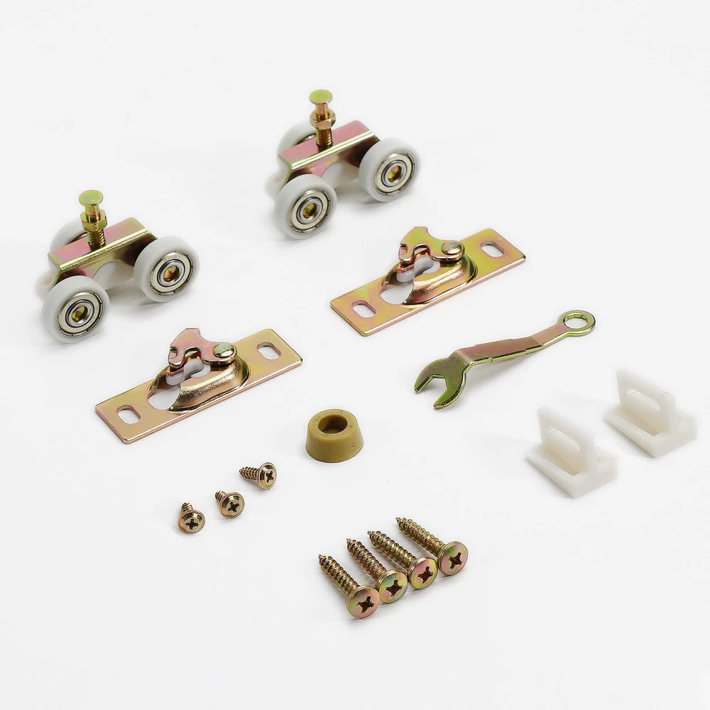 Pocket door rollers used for Johnson and other sliding closet doors Sliding door wheels is compatible with 100, 134F, 138F, 2610F Series sliding door Track. Package include: pocket door rollers *2, hanger plate *2, pocket door guide *2, door stopper *1, wrench *1, screws. Please refer to the pocket door track cross section of picture 3 before ordering. All the necessary mounting pocket door hardware is included for a quick and easy installation.
