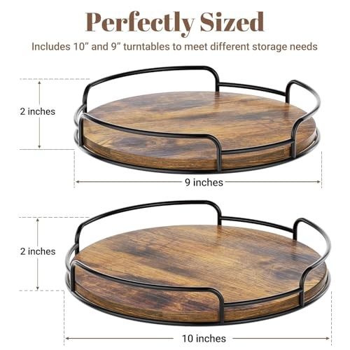 Return Policy Fast Delivery Trusted seller 2 Pack Lazy Susan Organizer for Table Top Rotating Spice Rack Organization 10" + 9" Wood Lazy Susan Turntable Organizer for Cabinet Kitchen Pantry Countertop Bathroom Vanity Product Description VERSATILE TURNTABLE SET: This set includes two wood Lazy Susan organizers, sized 10-inch and 9-inch, each measuring 2 inches tall, designed to be used separately or together to meet a variety of needs 360° SMOOTH ROTATION: This Lazy Susan spins 360°effortlessly, featuring a non-slip pad for easy access to your desired items. Perfect for countertop! It enhances your cooking and dining experience No Assembly Required: This Lazy Susan sets comes ready to use with no installation needed. To adjust the rotation tightness or looseness of the Lazy Susan, please turn the screws under it EASY TO CLEAN: For daily use, simply wipe the Lazy Susan with a damp cloth and let it dry completely; avoid placing it in the dishwasher or soaking in water MULTI-PURPOSE USE: Our rotating storage tray is versatile, perfect for organizing kitchen countertop, cabinets, or serving as a decorative tray Shipping Returns Payment Shipping Shipping is FREE to all addresses other than APO/PO boxes in the lower 48 states. All our stock ships from US-based warehouses. Shipped via USPS or UPS (depending on location and package weight) Unless stated otherwise, all orders will ship within 24-72 hours of your payment being processed. Check our feedback to see the great reviews of FAST shipping we offer. Returns Seller does not accept returns Payment We currently accept payment via eBay managed payments only. Once payment is cleared, we will dispatch your shipment within 1-3 business days. Please refer to the "Shipping" tab for more information regarding shipping speed to your destination.
