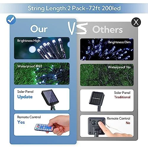 Menu 1. We require immediate payment. 2. We currently accept payment via eBay managed payments only. 3. Once payment is cleared, we will dispatch your shipment within 1-3 business days. Please refer to the "Shipping" tab for more information regarding shipping speed to your destination. 2 Pack Solar String Lights,Each 72ft 200 LED Solar White Christmas Lights Outdoor with Remote and Timer, 8 Modes Solar Tree Lights Waterproof Solar Fairy Lights for Garden,Yard,Patio,Party Product description ✨【Solar Powered Outdoor Lights】: Upgraded Solar Lights with remote- 2 Pack Each 72ft 200LED bright white String Lights.Advanced Solar Panel Build-in1200MAH Super Larger Capacity Battery for Longer Working Time and no extra utility electric cost.Twinkle 8 Lighting options for your various needs.Each String Length:22m/72ft,Lead wire Length:2m/6ft,Space between LEDs:10cm/4inch.Perfect addtion for create a warm,joyful and festive atmosp. ✨【Energy Efficient with Quick Charging】:Higher Conversion with Larger Size Solar Panel,Adopt new upgraded 1200mAh high capacity solar panel which can be charged under the direct sunshine for 6-8 hours,effectively converting light energy into electrical for storage that work for 10-12 hours to achieve high-efficiency release at night.Featured of 0 electricity bills throughout the year,energy saving and environmental protection.Without worries when t is no socket or power outage. ✨【Durable with Super Weatherability】:Waterproof Patio Lights,all the components are waterproof enabled to be used in a variety of environments from -10℃~45℃,Weather Resistent withstand various weather sunlight,wind,rain,snow,and humidity,which is the perfect choice for outdoor and indoor decoration.Durable overall wire for family safety usage.72ft long string is perfect for Hanging on tree or wver you like to light up your garden,patio,lawn,porch,gate,yard, Christmas Decoration,etc. ✨【Smart Remote Control with Timer】:The Solar Christmas Lights come with wireless remote control for more conveniently setting and Longer Singal range.3/5/8 different hours build in timer function can provide an automatic shutting off. In the meanwhile,3 Level dimmable brightness with 8 twinkle lighting satisfy for your various choose and scene display.Furthermore,memory function can save last setting mode when you turn it on next time. ✨【Ideal Outdoor Solar Fairy Lights with Worry Free Customer Service】:What you will get:2 x Solar String Lights,2 x Solar Panel,2 x Ground Stake,2*Remote Control,1 x User Manual.We support the durability of our products. If t is any problem with our product,please feel free to contact us.we are 24 hours and must try our best to deal with it,we will not let you bear any loss because of the product quality problem. PLEASE MESSAGE US IF YOU HAVE ANY OTHER QUESTIONS, AND MANY THANKS FOR READING ALL OF THIS. Copyright ©#. All Rights Reserved.