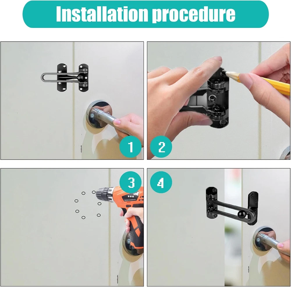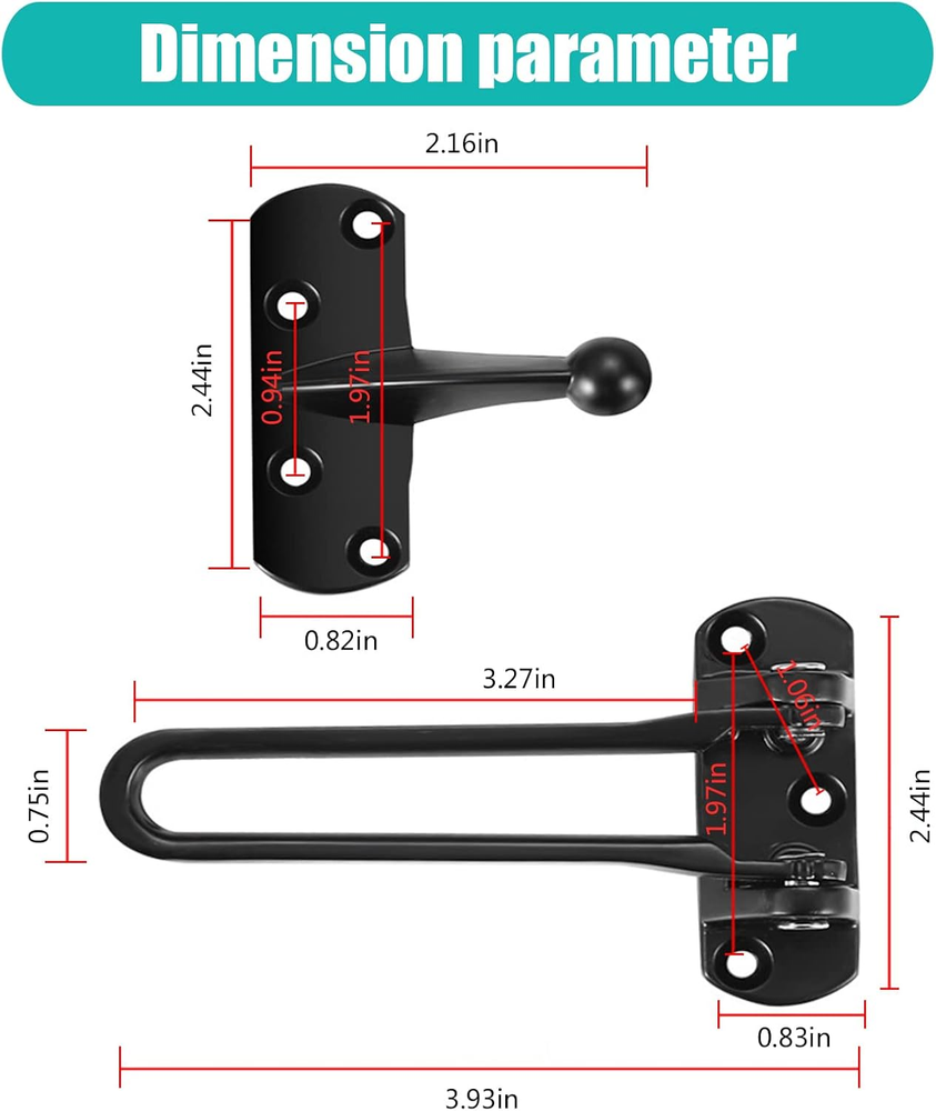 This swing bar lock is a game-changer for home security! Super easy to install, no tools needed, and it keeps my little ones safe from wandering out. The sturdy black metal feels durable, and it works perfectly on swing-in doors. Love that it comes in a 2-pack—great value for added peace of mind. Highly recommend for parents or anyone wanting extra door reinforcement!