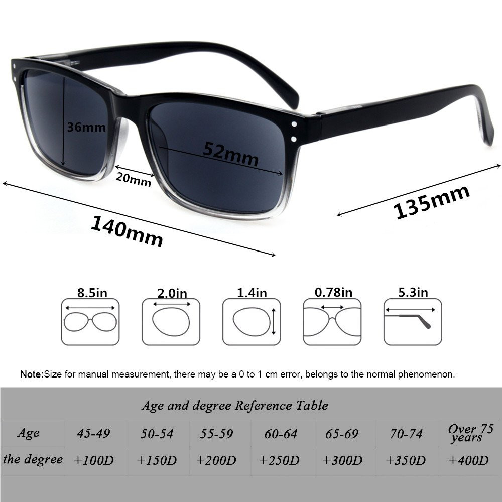 Description Description: 100% brand new and high quality Stylish ,light and comfortable Quantity: 2 Pcs Specification: Material : PC Frame, AC Lens Note: Size for manual measurement, there may be a 0 to 1 cmerror, belongs to the normal phenomenon. Due to the difference between different monitors, the picture may not reflect the actual color of the item. Thank you! 2 Pack Spring Hinge Frame Readers Reading Glasses for Men and Women. Great for home, office, or bedside use. Keep a pair at your desk, in your bag, and in your favorite reading spots. Lightweight plastic frames and plastic lenses with durable spring hinge temples ensure a comfortable fit without uncomfortable pinching. Classic shape fashion frame reading glasses updated with a fun and colorful design for a fresh look. Universal size fits most face shapes. Spring Hinges Fit Most Face Sizes