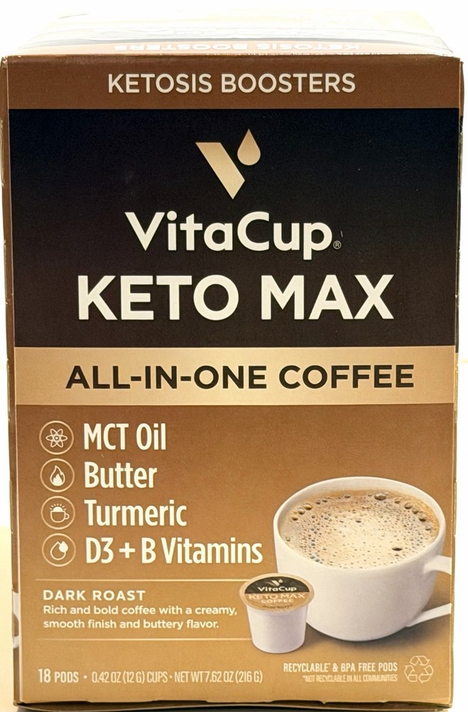 All keto ingredients mixed in, skip the measuring. Sustained energy and focus from one morning cup. Creamy, satisfying taste keeps you full longer. ALL IN ONE KETO: Don’t waste time and money buying individual ingredients to make your keto coffee. KetoMax takes the work out of it for you with butter + coconut MCT oil + vitamins, in a ready to drink formula. DARK ROAST COFFEE: Sip on premium 100% Arabica beans from Chiapas, Mexico for a super clean energy boost. We put in the hard work so your coffee can work hard for you. DIETITIAN FORMULATED: Each VitaCup blend is dietitian-formulated and packed with the nutrients your body needs to function at its best. KetoMax is made with functional ingredients and is free from gluten & soy! DAILY DOSE OF VITAMINS: Each cup of coffee contains an essential blend of vitamins and nutrients, allowing you to simplify your morning routine with one less step. KetoMax contains vitamins B1, B5, B6, B9, B12 & D3.