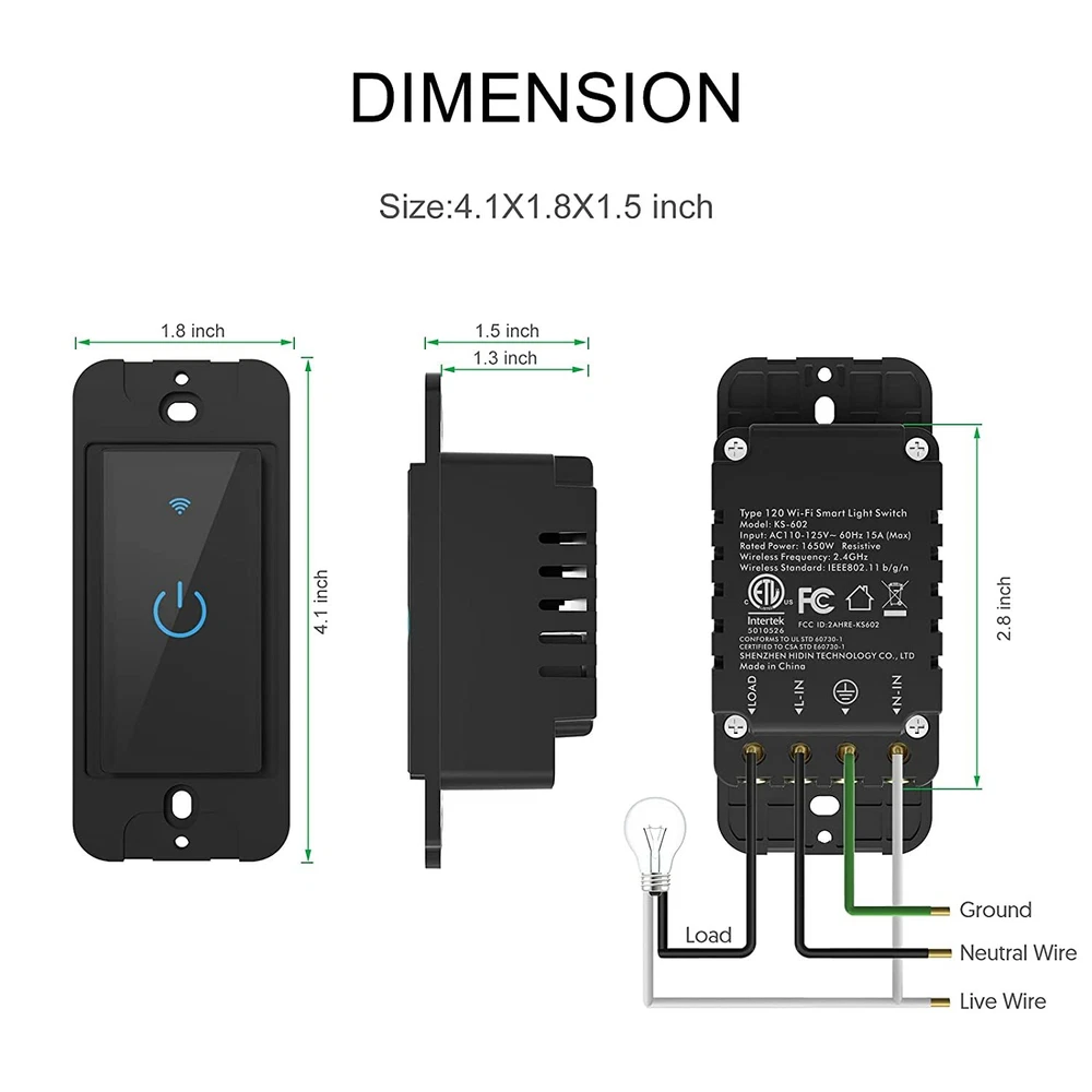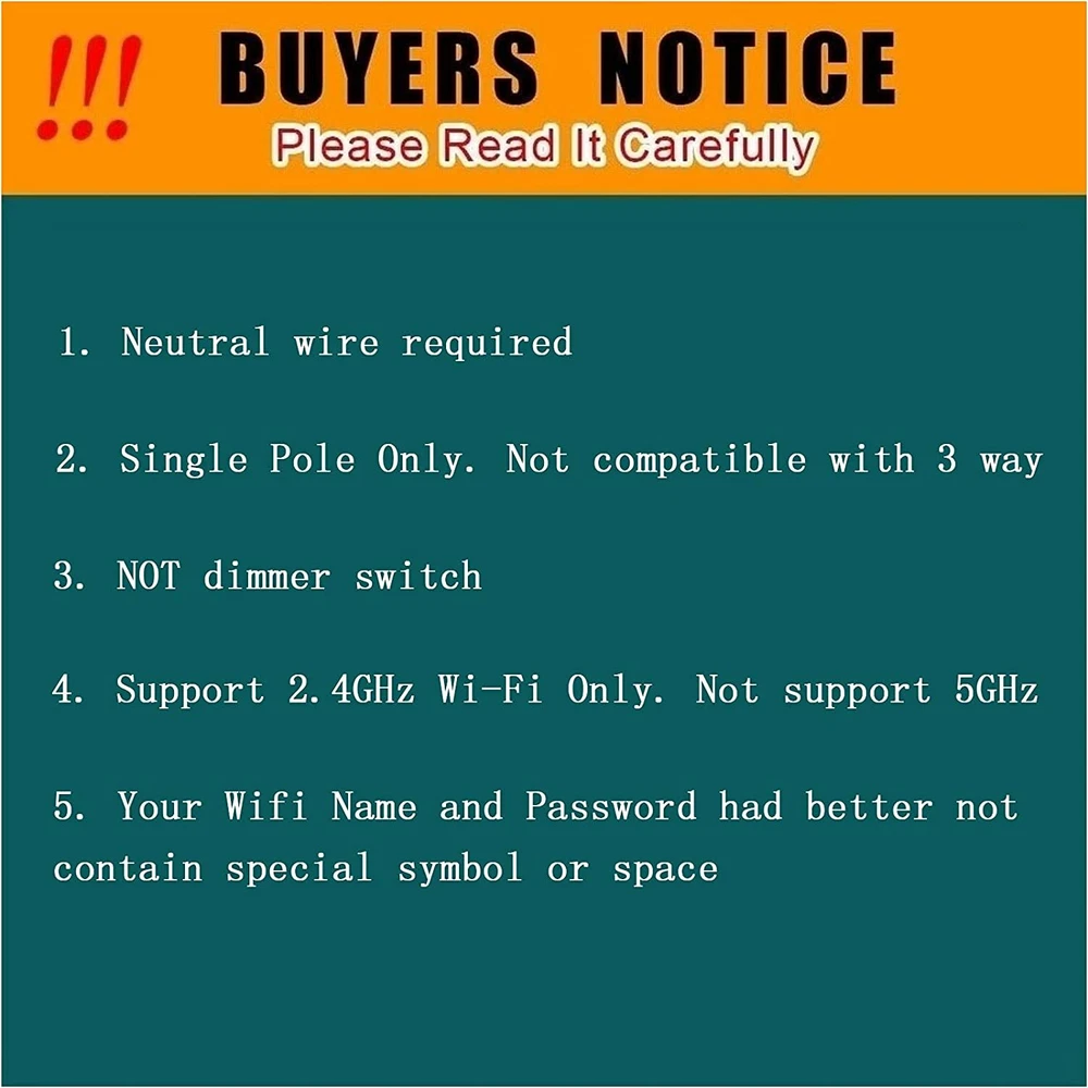 Easy to Set Up 1. Download the “Smart life” from App Store or Google Play store. 2. Connect your mobile device to your 2.4GHz Wi-Fi network. 3. Launch “Smart life” and follow the wiring steps provided. 4. Connect the Smart Switch to your home network. 5. If you don’t know how to install the switch, or don’t know how to connect to wifi or Alexa, please feel free to contact us. Kindly Remind: 1. Live wire and neutral wire are required. 2. We recommend asking professional electrician to install. 3. Support 2.4 GHz Wi-Fi Only. 4. WiFi name and password should only contain letters and numbers. No special symbols allowed. 5. Our switch is one-way switch, can't be compatible with 3-way switch box. 6. If you have any problem in installation and use, please contact us any time by checking Your Orders and clicking Contact Seller Smart wall light switch install and connection instruction: Watch Video Video will open in a new window Using the eBay App? Paste link into a browser window: [isdntekvideo]