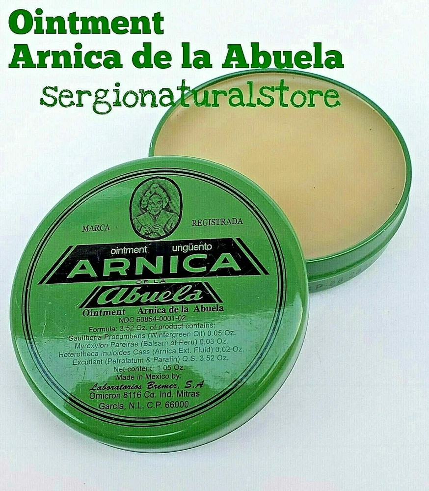 Any questions with the description of the product, communication? Send me a message, I am at your service. (2 Packs) ARNICA DE LA ABUELA Ointment 30 grs each Made in Mexico A tried and true herbal remedy used widely in Mexico and Latin America. Application: External Suggested Use: Apply to affected area two to three times a day. Disclaimer: Not for internal use. 100% Original Product Thank you for your support and preference, I invite you to see my other sales items. Buy with confidence !!You shipments is 100% Guaranteed!! (2 Packs) ARNICA DE LA ABUELA Ungüento 30 grs c/u Hecho en Mexico. Un remedio herbal probado y verdadero usado ampliamente en México y América Latina. Aplicación: Externa Uso sugerido: aplicar en el área afectada dos o tres veces al día. Descargo de responsabilidad: No es para uso interno. Producto 100% Original Muchas Gracias por su apoyo y preferencia, lo invito a mirar mis otros artículos de venta. Compre con confianza !!Su envío es 100% Garantizado!!