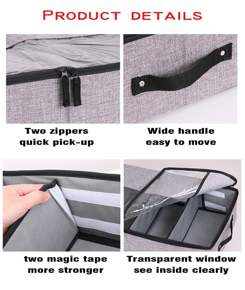 AARAINBOW 2 Packs Foldable Under Bed Clothes Organizer with Lids, Underbed Storage Container with Adjustable Dividers, UnderBed Storage Bins with Handles and Clear Window (Gray+Light Gray) đă4 Large GridsăThe size of AARAINBOW Under bed shoe storage container is 22.3*12*5.7 inches. The shoe organizer under bed low profile equipped with 4 removel grids, Low profile under bed storage is perfect for storing your seasonal clothing, clothes, dress, boot, bedding, shoes, down jackets, scarf , toys, etc. đăSuperior MaterialăAARAINBOW Under bed shoe storage organizer is Made of high-quality linen and thick PP, which is odorless, durable, sturdy, breathable. Visible window allows you to quickly view the clothes and keep them tidy and neat. đ ăPractical DesignăThe underbed storage organizer for closet can be pull out effortlessly with the 2 reinforced handles. Underbed storage with dividers Equipped with 2 stainless steel zippers, 2-way zippers allow it to easily slide along the closure when in use. đ ăWidely UsedăThe foldable storage bins under bed are suitable for dormic, attic, basement, bedroom, etc. Small under bed storage easy to fold away and take up little space when not in use. đ ăTipsăPlease measure your space height and length firstly to make sure the box can fit there, we had offered the exact dimensions in description and picture. If you have any question about the fabric under bed zipper storage, please contact with us, We will offer you a satisfying solution, We are there for you, reply within 24 hours. SHIPPING - We offer FREE shipping on all orders! - We ship within 3 business days of payment, usually sooner - We use a selection of shipping services such as UPS, FedEx, USPS etc - We only ship to the lower 48 states, no APO/FPO addresses or PO Boxes allowed International buyers â please note: Import duties, taxes, and charges aren't included in the item price or postage cost. These charges are the buyer's responsibility. - Please check with your country's customs office to determine what these additional costs will be prior to bidding or buying. - We have confidence in our products, but if you are not fully satisfied please contact us within 30 days of purchase and you will get full refund. * Order Cancellation Policy ** You can return a product for up to 30 days from the date you purchased it. 1. The seller reserves the right to cancel the special case only due to eBay cancellation fee. 2. The decision of seller is the final. 3. The seller will respond to the cancellation request within 2 business days. Please wait for the result of cancellation. 4. In case the cancellation is not completed by some reasons, the buyer can follow the options below to get the refund. 4.1 The buyer can reject the item when it arrives. 4.2 The buyer can send the item back to the seller within 30 days If the buyer receives item (USA Shipment ONLY). The seller will provide the FREE return label to the buyer when the buyer opens " Return Item" case on eBay by using the reason as "Change my mind" ONLY. 5. When buyer has placed the order. The order will be processed and completed by automatic warehouse system within 5 minutes. In case that buyer sends the cancellation request after 5 minutes of placing the order, the request will be rejected. **Sending direct message to cancel the order is not allowed for every case.* Return Policy For the return case - If buyer would like to return the items for refund or replacement, please CONTACT SELLER to receive the free return label from seller. The refund or replacement will be processed with the tracking number of return label which is provided by seller only. The other ways of return which are not approved by seller will not be processed for the refund or replacement. CUSTOMER SERVICE - We try our best to make sure every customer is completely satisfied. - If there's a problem, feel free to message us! - We're happy to help.