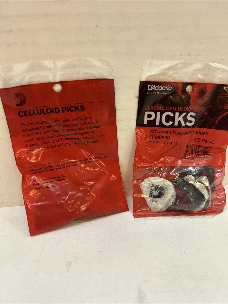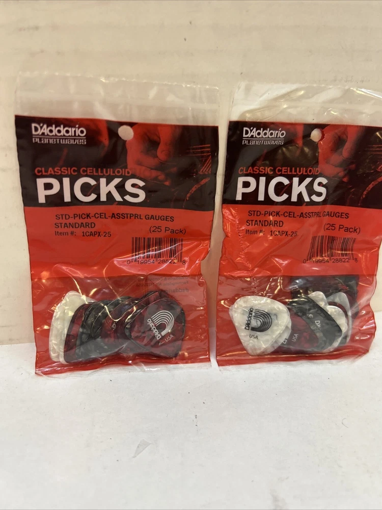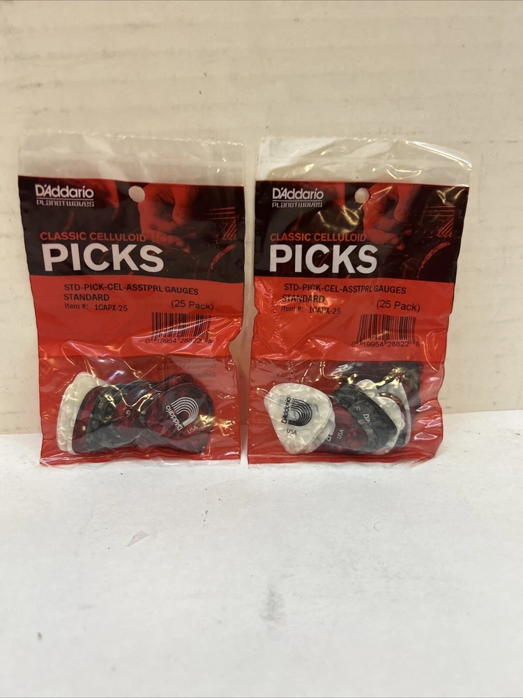 Model:Does not applySize:25-packMaterial:CelluloidUPC:019954288228MPN:Does not applyBrand:D'Addario AccessoriesType:Guitar PickColor:Assortedgtin13:019954288228