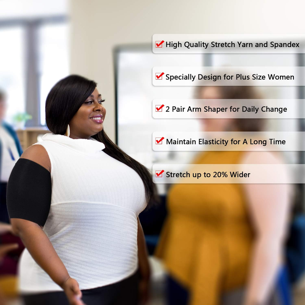 Store New Arrivals Add to Favorite View Feedback 2 Pair Arm Sleeves for plus Size Women, Slim Upper Arm Compression Shapers Wraps, 1 Pair Calf Compression Sleeves Included Description Item model number SATINIOR-Arm Wraps-21 Department womens Product Dimensions 9.84 x 4.72 x 0.63 inches; 3.39 ounces Country of Origin China Manufacturer SATINIOR Nylon Plus size arm shaper for women: the arm shapers are in plus size, designed to help fight the jiggle; Compare to other regular arm shapers, our arm sleeves can stretch up to 20% wider, larger and more comfortable to use (suitable for arm circumference 7 - 16 inches) What you will get: you will receive 1 pair of beige arm compression sleeves, 1 pair of black arm compression sleeves and 1 pair of black calf compression sleeves; Each arm compression sleeve measures 21.5 cm/ 8.5 inch in length; Each calf compression sleeve measures 16.5 cm/ 6.5 inch in length Say goodbye to flabby arms: these slimming arm wraps are designed for people with saggy arms, you can easily shape your arms over time by compressing arms while fighting the jiggle away; No saggy arms any more after wearing these upper arm compression sleeves Quality calf and arms shapers: these plus size arm wrap and calf compression sleeve are made with the quality nylon and spandex materials that can grip your arm and calf, helping burn calories and shaping them Wear them at any occasion: whether you are at home, at work, attending a party or anywhere else, you can use the arm shaper sleeves and calf shapers because you can wear them underneath clothing; The plus size arm shapers help to give you a slimmer appearance you desire ABOUT US We offer the best prices around on high quality products. Our E-store includes media such as books, movies, music and games while offering electronics, toys, sporting apparel, clothing, tools, general home, garden items and more. SHIPPING We are always working hard to ensure your package arrives as soon as possible. Please understand that some factors like weather, high postal traffic, and the performance of shipping companies are outside of our control. We offer free shipping to the lower 48 states and ship within 2 business days of payment, usually sooner. We do not accept P.O. Boxes. Please provide a physical address. RETURNS We offer a 30-Day Return Policy on items which you are not completely satisfied with. You have the option for a full-refund or an exchange of the item. No returns are available on items shipped outside of the USA. PAYMENT We accept PayPal. CONTACT US This page content is yet to come Please ad us to your favorite seller and visit again later Thank You