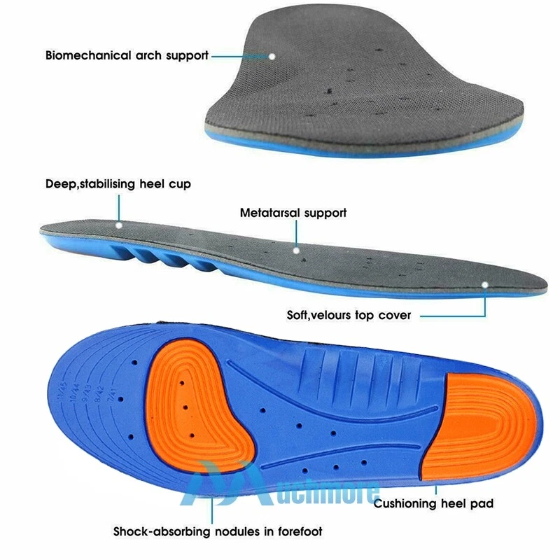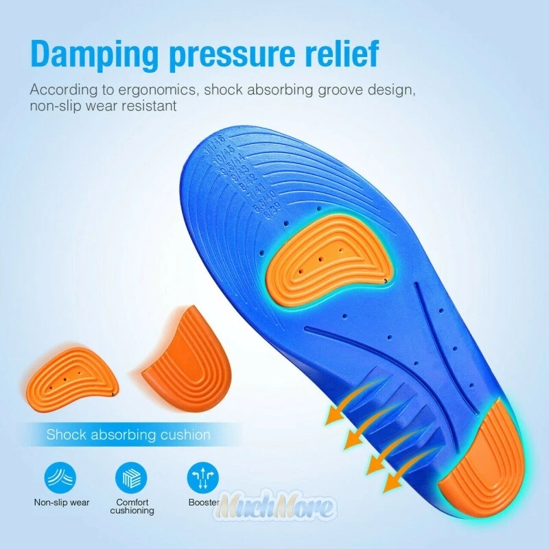 2 Pairs Gel Insoles for Man Women Orthopedic Shoe Inserts Sport Shock Absorption Product Description 2 Pairs Gel Insoles for Man Women Orthopedic Shoe Inserts Sport Shock Absorption 100% Brand New & Excellent quality Free & fast shipping, with tracking number provided Features: * Made of high quality super-soft gel material and soft fabric upper. * Ideal for anyone who finds walking tiring and stressful on their feet. * Trim to fit using the size guidelines on the insole. * Specially designed with the arch support section, giving you better balance as you walk. * Great for all sufferers of arthritis, gout, heel spurs, calluses or anyone recovering from a sports or work injury. Specifications: * Material: GEL and fabric * Color: Blue+orange * Total length: 30cm * Size: for UK Shoes 7-11 *(41-45) Select from the drop-down menu above Package Includes: 2 Pair x GEL Orthotic Support Insole Payment Shipment Return Feedback Contact us Payment * We Accept Payment via PAYPAL ONLY . * Payment Must be Made within 4 Days of Auction Closing. * Non-Payment may Result in a UPI (Unpaid Item) being Put on Your Account. eBay will Automatically Close Your Account if You Accumulate 4 UPI's total. * Please List Your Special Requests ( Color, Size, Packages, etc. ) in the PAYPAL NOTES SECTION when you make payment. Shipment * Shipping will be handled in 24 business hours after payment got. Ship to PayPal Address only , please confirm it before paying. * Please leave your phone number in the address in case there is an address problem. Return * Returns and Exchange accepted within 60 Days. * Refund will be given as Money Back. * Free Return shipping. * Before you return the defective item,please email us for the RMA, and we will reply you in 24 hours in working days. If you do not get reply please check if your mail box has refused our reply or not, then send to us again, thanks! Feedback If you are satisfied with the transaction please remember to leave us a positive feedback (5-Star) will be much appreciated. Please DO remember to contact us before leaving the neutral (3 stars) , negative feedback (1-2 stars) or opening a case/dispute if any problem caused by the item . Normally your email would get replied within 24 hours on working day and your issue would be followed up carefully until we've reached a consensus! We will try our best to solve the problem and leave you a happy shopping mood here. Thank you! We are not only selling good items, but also selling with excellent after-sale service and a strong sense of responsibility. We will always try our best to find you a satisfactory solution if any problem takes place! Contact us Email muchbuy-outlet at Paypal registered email or ebay message. On Feb 5, 2025 at 11:02:47 PST, seller added the following information: