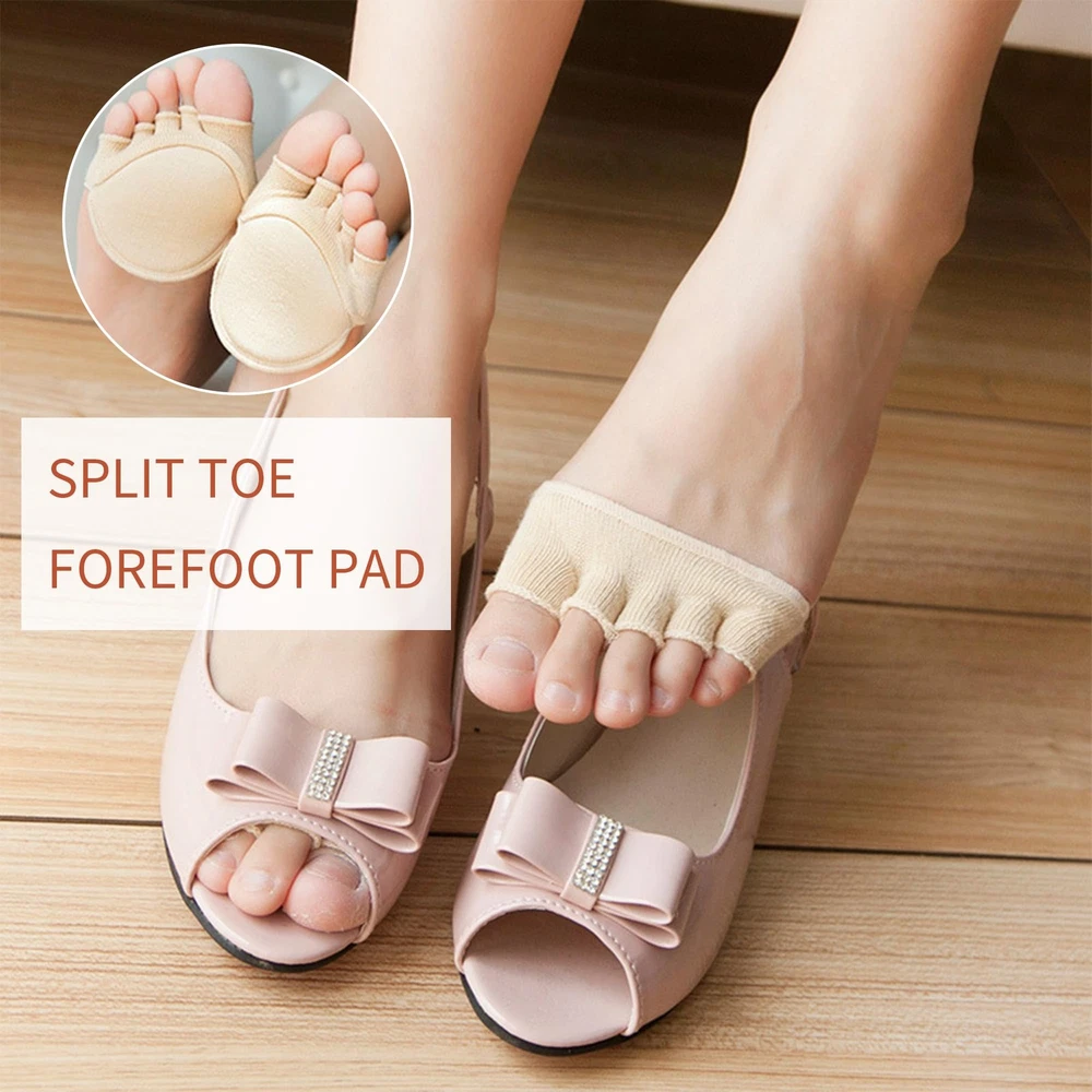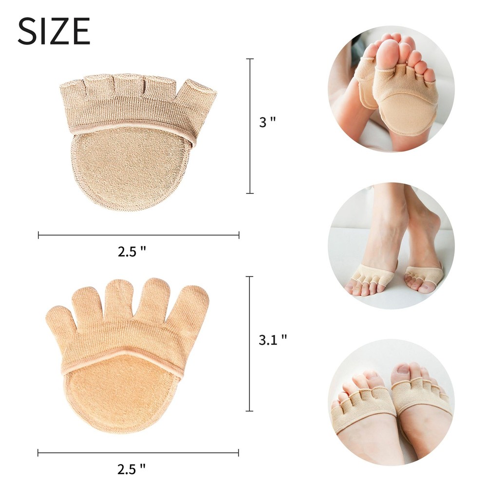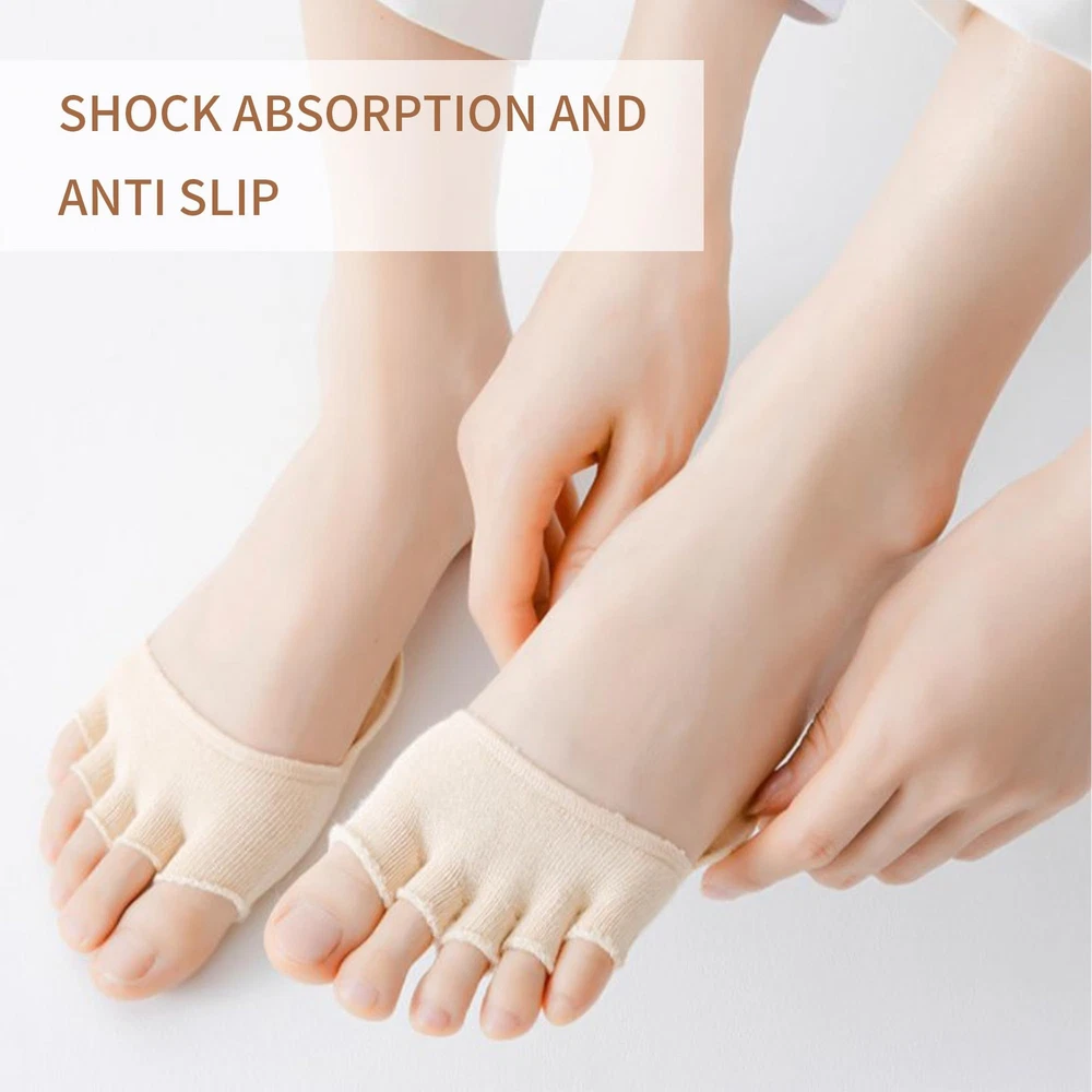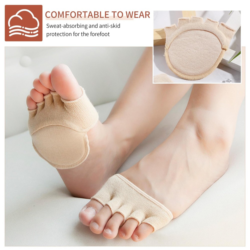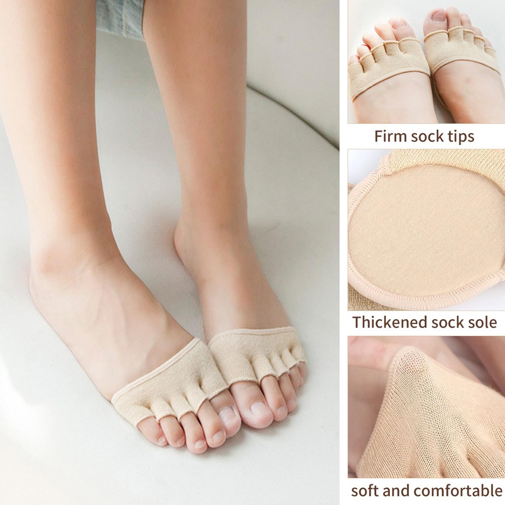Package includes: 2 Pairs toe topper socks You can give this five finger half-toe socks as a gift to your mother, wife, sister, girlfriend or other female friends on Christmas, Halloween, wedding anniversary, birthday or other meaningful festivals to fully express your care and love. 〖MATERIAL〗: The five toe topper socks are made of highly elastic and breathable cotton, breathable fabric with good moisture management keeps feet dry and fresh, providing maximum comfort for daily use, toe socks fit various types of feet, with elastic and breathable, humanized design which helps reduce pressure and tension on the forefoot, no sweat and non-slip. 〖PRACTICAL DESIGN〗: The toe socks feature a split-toe design that separates the five toes, allowing your feet to breathe more freely, reducing friction between the toes and effectively reducing foot fatigue. 〖FOREFOOT SUPPORT〗: The sock incorporates a support structure in the forefoot area that stabilises the foot's flexion, provides extra support and protection, reduces pressure on the forefoot when walking and exercising, and prevents plantar muscle fatigue. 〖AVOID EMBARRASSMENT〗: Our invisible split toe socks have good anti-falling performance, can be firmly worn on your feet, can be matched with a variety of shoes, make your appearance look elegant and generous. 〖MULTIPLE USES〗: These split toe forefoot socks are suitable for various occasions, such as hiking, running, working, etc., which brings you a wonderful wearing experience and gives your feet full protection and comfort.