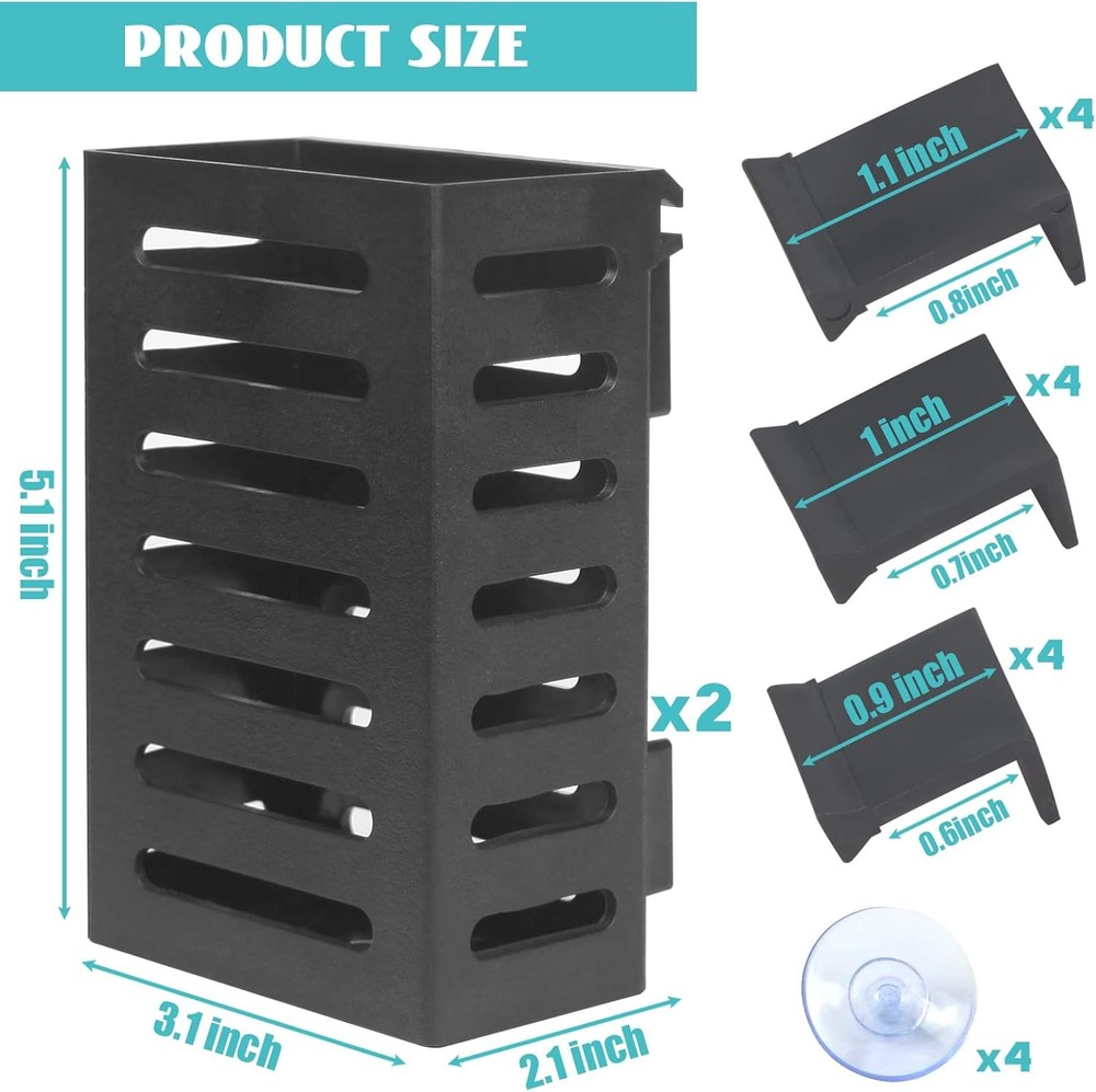 2 Pcs Aquarium Plant Holder, Fish Tank Holder Black_Hook+Suction cup Product Details Product Dimensions: 2.1 x 3.2 x 5.1 inches Item Weight: 5.6 ounces Manufacturer: SANJHFF Item model number: SZL02 Brand: SANJHFF Material: Plastic Special Feature: Weather Resistant Product Dimensions: 5.1"L x 2.1"W x 5.1"H Item Weight: 0.16 Kilograms Shape: Rectangular Specific Uses For Product: Aquarium,Fish Tank Style: Modern Color: Black_Hook+Suction cup Included Components: Container, Holder, Suction Cup 【Multi-Purpose】 This fish tank plant holder is perfect for cultivating aquatic plants in fresh and brackish water, it is also more beautiful and stable than other types of aquatic plant cups. It works well for dandelion, lotus, narcissus, lucky bamboo and many more aquatic plants. It can not only decorate your tank, but also help you to reduce nitrate in your tank. It provides a better environment for fish and shrimp to grow. 【Quality Service】If you have any questions or suggestions about this product, please feel free to contact us, we will provide you with satisfactory service. 【High Quality】This hanging aquarium plant holder is made of high quality ABS plastic, corrosion resistant, high temperature resistant, non-toxic and odorless, it can provide a safe and healthy living environment for fish and plants, and can decorate your aquarium for a long time. 【Perfect Size】Aquarium plant pots: 3.1*2.1*5.1 inches; stand: there are three different sizes with hanging space (0.6/0.7/0.8 inches), you can choose the most suitable stand and fix him in the position you want so that it can be easily moved and hung firmly on your aquarium.suction cup: can be firmly attached to the aquarium glass. 【Unique Design】This aquarium plant holder is uniquely designed and easy to use. There are many holes around this stand, which ensures that water can flow through the roots of aquatic plants, creating a good water circulation inside the aquarium, and the holes at the bottom are also available for the roots to grow effectively.