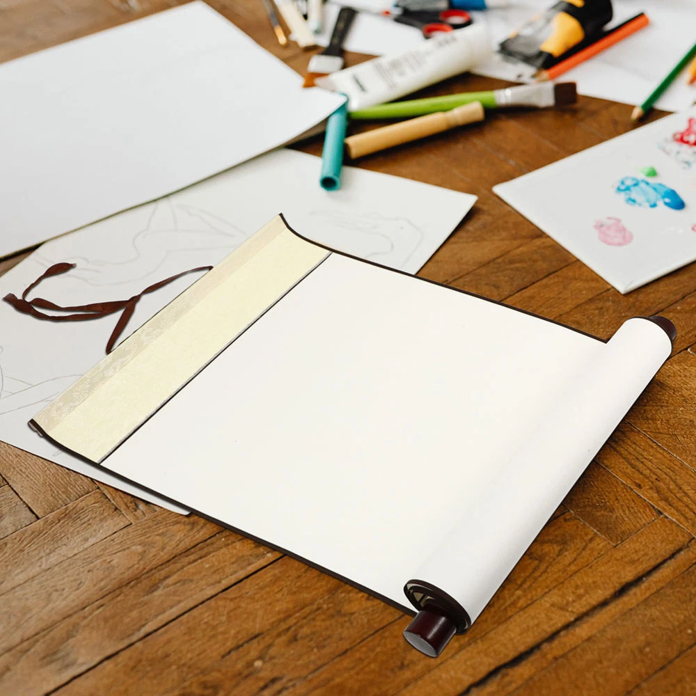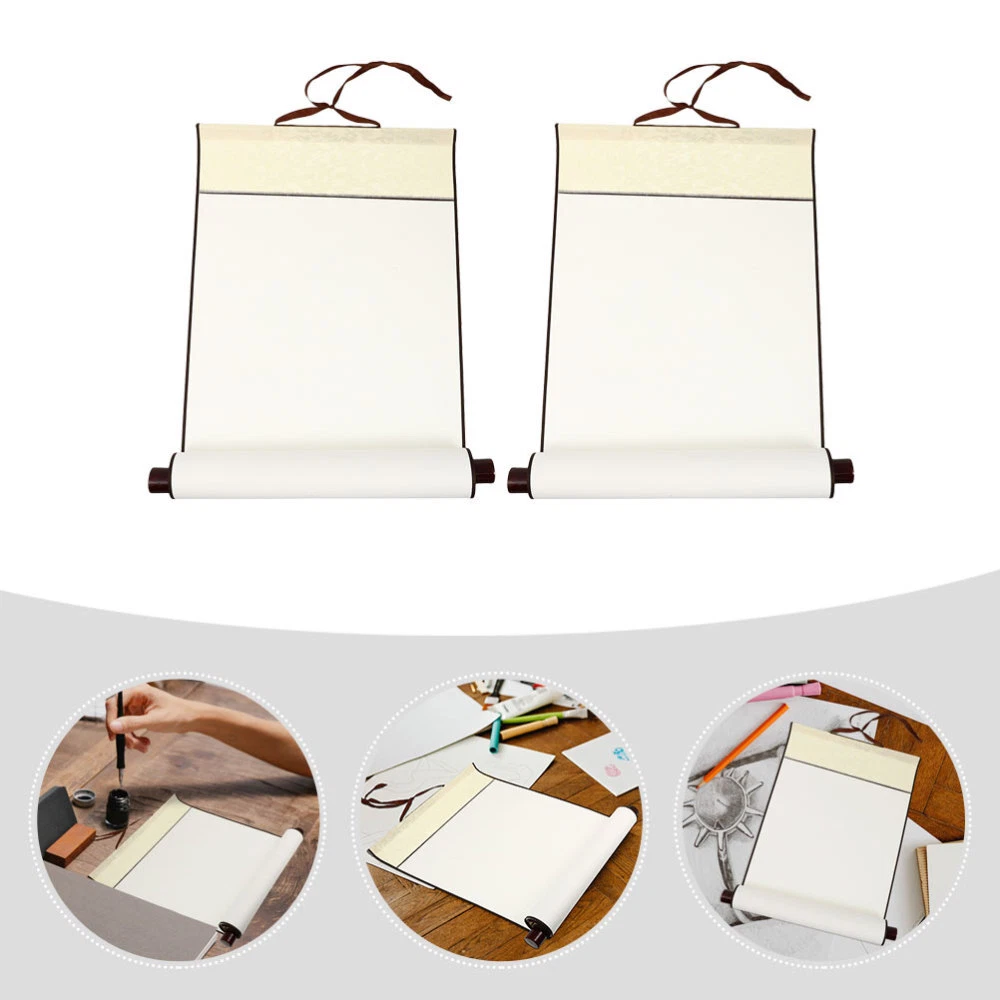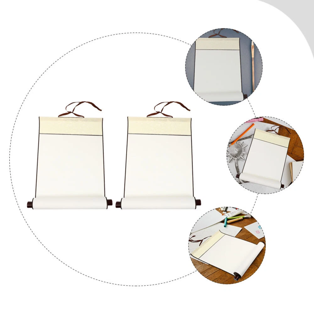 2 Pcs Wakauto Paper Scroll Wall Calligraphy Blank Hanging Chinese Child