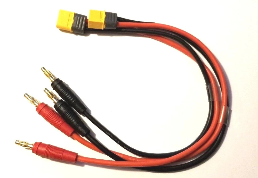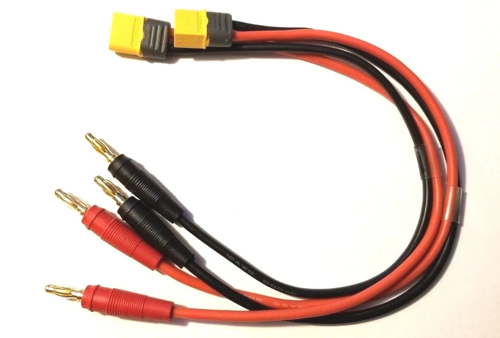 2 Pcs XT60 Male Battery Charging Lead to 4mm Bullet connector 12 AWG Wire Amass Brand New 2 Amass XT60 Male Charger Lead with black heat shroud to 4mm Banana connector made with 12 gauge wire. The charger lead is 14 inches in total length which allows you to more easily place your batteries where you want them instead of being in a crowded area. This lead will fit any charger with 4mm connectors and is genuine amass XT-60 and to last. Thanks For Looking! We ship twice daily cutoff time is 4pm eastern once on Saturday cutoff time is 11am eastern