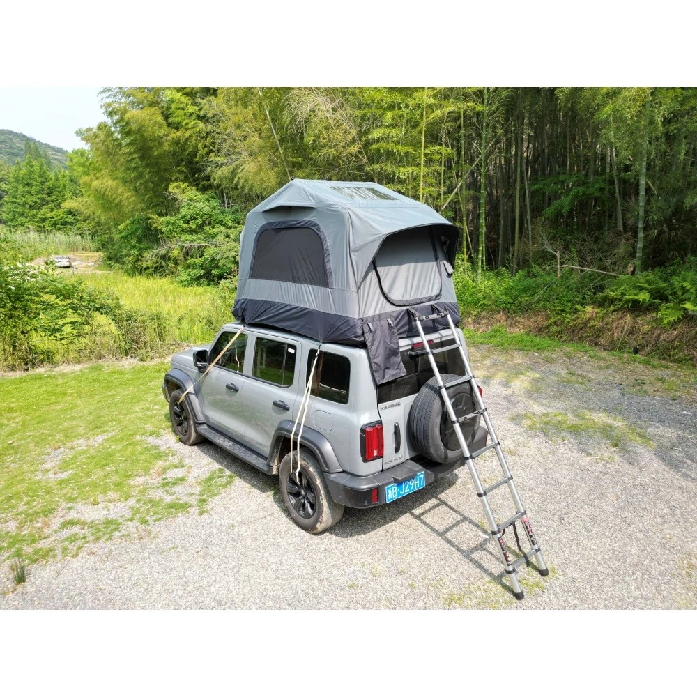 Fabric: 300D elastic yarn cloth with a cotton-like hand feel—closer to cotton than traditional Oxford cloth, yet mold-resistant and waterproof up to PU8000+. It also resists wrinkles better than Oxford. Panoramic skylight: Made of TPU polyether, which costs more than polyester. Compared with PVC, TPU remains flexible in low temperatures, resists creasing, and offers superior light transmission and durability. Base: 500 g/m² PVC knife-coated fabric, waterproof up to PU10000+. Highly scratch- and abrasion-resistant, unlike the Oxford cloth many competitors use, which can be punctured by stones and offers poorer waterproofing. Zippers: SBS premium brand—remain smooth after tens of thousands of uses. Mesh: N300 “diamond” mesh—far more abrasion-resistant than standard B3 mesh; won’t snag or fray, and resists claw damage from pets. 15 cm thick air-beam base: Doubles as a mattress and can even be used on water, supporting loads over 250 kg. No extra roof-rack accessories required—fits standard crossbars. Two people can easily lift the tent onto the roof. Rapid setup: With the electric pump, inflation and full setup take under 5 minutes; with a manual pump, installation is complete within 10 minutes. 300D Oxford fabric Waterproof PU3000mm, UPF50+ provides excellent sunshade and UV resistance. Good hand feel, not easy to wrinkle. 15 cm thick brushed bottom plate A 15cm thick brushed base plate, which can be used directly as a mattress or for use on water surfaces, with a load-bearing capacity of over 250kg. The aluminum base plate telescoping ladder, and roof create a three-point support system for enhanced wind resistance. When folded, the tent can be secured with Velcro straps to prevent it from being lifted by the wind. Enhanced Comfort Inside Enjoy greater comfort during outdoor camping or overnight stays. The tent features multiple ventilation points, breathable mesh window, and a thick, non-deforming foam mattress for added comfort. Inflatable Camping Tents with Hand Pump,Rooftop Inflatable Tent - Gray+Black Color Gray+Black Product Dimensions 86.61'' W x 57.09'' D x 52.36'' H Recommended Uses For Product outdoor 、Camping Fabric 300D Oxford Unit Count 1 set Person 1-3 Carton size 1set: 31.50'' W x 18.90'' D x 14.96'' H Item Weight 66.14 Pounds Country of Origin China