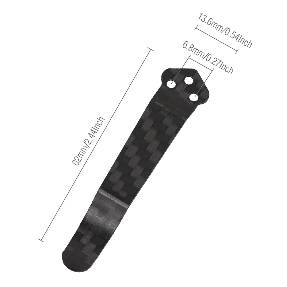 pocket clips are great aftermarket replacements accessories for your broken or worn pocket clips. Add years to the life of your old knives with very little time or effort, and save much money. Specifications: Item: Pocket Clips Material: Titanium Alloy Color: Black Carbon Fiber Overall length: 2.44 Inch (61.8mm). bottom Holes center distance: 0.27 Inch (6.8mm). 3-hole design. COMPATIBILITY: Suitable for most Spyderco brand knives with 3 holes, such as models C10, C11, C41, C81, C90, C95, C101, C149, C223, except for C36 and C122 models. Note: The items are aftermarket parts, NOT OEM clips. Package Included: 2Pcs x Black Pocket Clips 6Pcs x Black Pocket Clip Screws. [WHAT YOU GET] - You will get 2 Packs 3-holes luxury carbon fiber deep carry pocket Knife clips, color: black. The package also includes 6Pcs black pocket clip screws. [DURABLE AND STURDY] - Made of high quality Titanium alloy, the Deep Carry Pocket Clips are durable and sturdy for long time usage. [SPECIFICATIONS] - Pocket clip overall length 2.43 Inch (61.8mm), width 0.54 Inch (13.6mm). 3-hole design and the bottom holes center distance is about 0.27 Inch (6.8mm). [COMPATIBILITY] - Suitable for most Spyderco brand knives with 3 holes, such as models C10, C11, C41, C81, C90, C95, C101, C149, C223, except for C36 and C122 models. [GREAT CLIPS] - The Pocket Clips are great aftermarket replacements accessories for your broken or worn pocket clips. We can refresh or revive your old knives, add years to the life of your old knives with very little time or effort, and save much money.