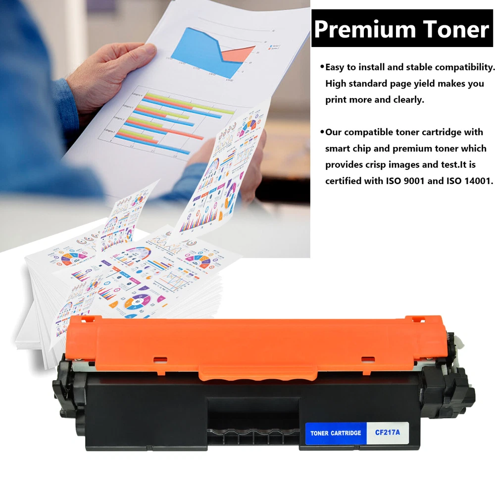 Condition: new It is certified with ISO 9001 and ISO 14001 Item:Brand New Premium Compatible For HP CF217A Toner Cartridge With Chip Model:CF217A Color:Black Shelf Life:2 Years Printed Pages:1,600 pages at 5% coverage (Actual toner yield varies with usage, graphics printed and environmental conditions.) Compatible printer list: LaserJet Pro M102w LaserJet Pro M102a LaserJet Pro MFP M130nw LaserJet Pro MFP M130fw LaserJet Pro MFP M130fn LaserJet Pro MFP M130a 2 Pk CF217A 17A Toner Cartridge For HP Laserjet M102w M102 M130fn M130fw M130nw Condition : new It is certified with ISO 9001 and ISO 14001 Item :Brand New Premium Compatible For HP CF217A Toner Cartridge With Chip Model : CF217A Color : Black Shelf Life :2 Years Printed Pages : 1,600 pages at 5% coverage (Actual toner yield varies with usage, graphics printed and environmental conditions.) Package Included: 2 Pack CF217A Toner Cartridge Compatible printer list: LaserJet Pro M102w LaserJet Pro M102a LaserJet Pro MFP M130nw LaserJet Pro MFP M130fw LaserJet Pro MFP M130fn LaserJet Pro MFP M130a Fast and Safe Shipping Reliability on the Move, Safety in Transportation. Print Effects Clear / Sharp / Vivid At Your Service Anytime Available to help you anytime. Please contact us through eBay messages.