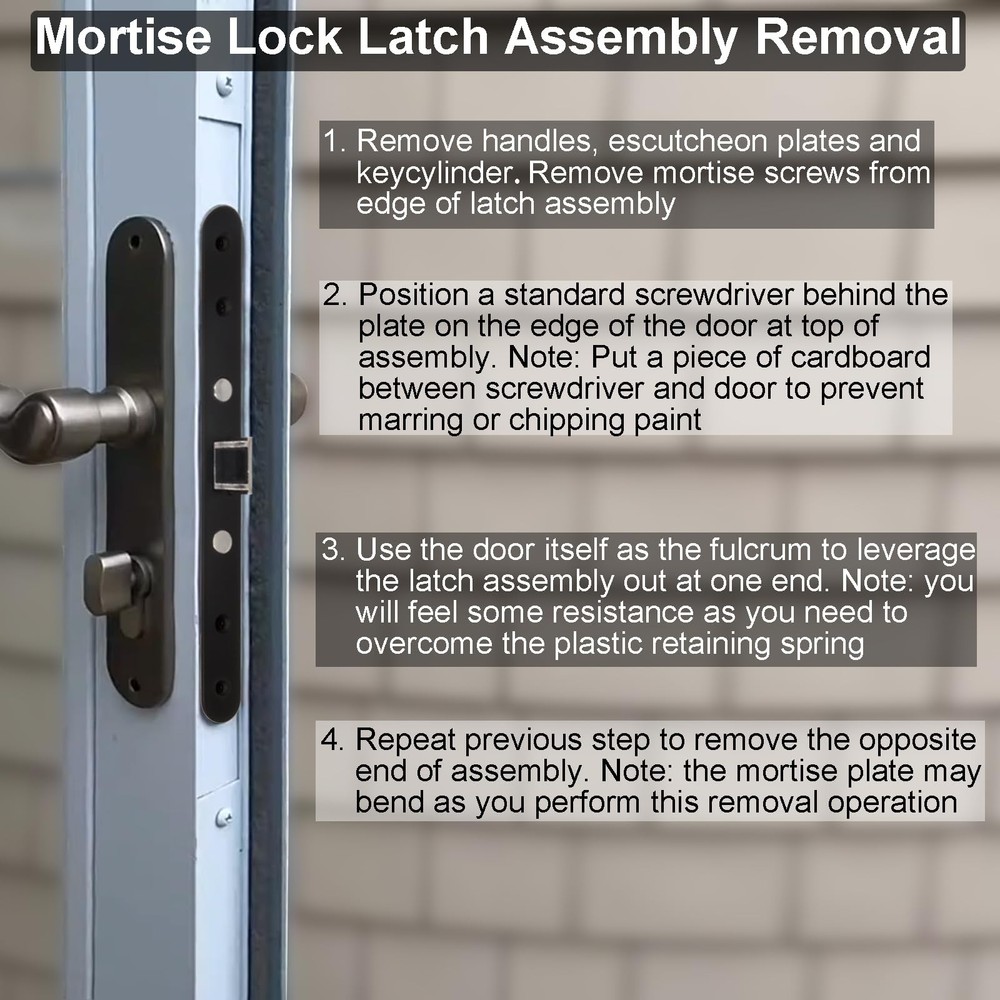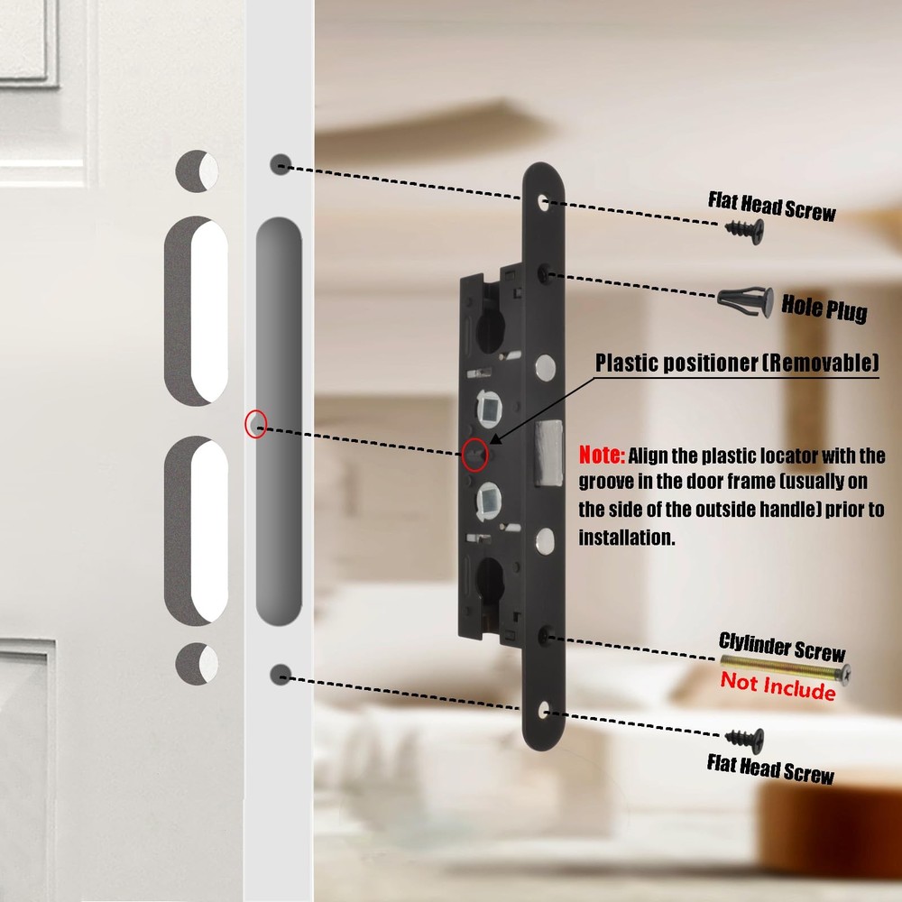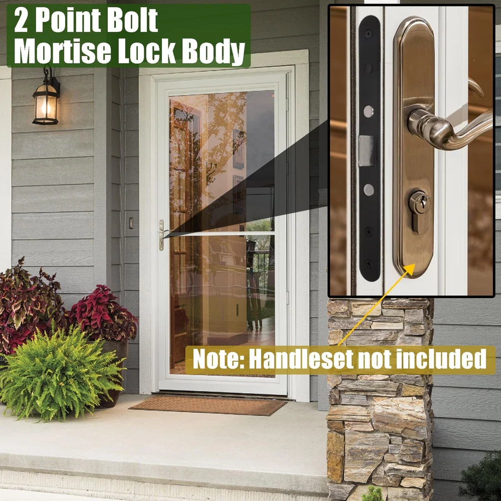 If your storm door latch assembly is broken, latches or deadbolt won't slide out or retract completely, simply get a new 2 point bolt mortise lock body instead of replacing the strom door or handle. This lock body is suitable for Pella Storm Door Handleset (Part No. 305014), Strike Plate for Pella 2-Bolt Mortise Lock (Part No. 305018) and models similar to them. 2-bolt mortise lock design with 2-point locking mechanism, and the locks can be equipped with a key lock for added security when needed 【Replace Old Lock Body】: If your storm door latch assembly is broken, latches or deadbolt won't slide out or retract completely, simply get a new 2 point bolt mortise lock body instead of replacing the strom door or handle. This lock body is suitable for Pella Storm Door Handleset (Part No. 305014), Strike Plate for Pella 2-Bolt Mortise Lock (Part No. 305018) and models similar to them 【Security】: 2-bolt mortise lock design with 2-point locking mechanism, and the locks can be equipped with a key lock for added security when needed 【Size Guide】: Bolts are 2-1/2 inches apart; Overall faceplate length: 8-1/2 inches; Faceplate width: 53/64"; Installation screw holes: 7-5/16 inches ; Center of handle to center of cylinder: 2-5/8 inches 【Easy Installation】: Insert the lock by aligning the triangular plastic positioner on the lock with the half-moon notch on the side of the mortise hole. There are 4 spring tabs that hold the mortise lock in the storm door, even with the panel screws not yet in place. Use a standard screwdriver and the spring tabs will retract when removing lock body. Put a piece of cardboard between screwdriver and door to prevent marring or chipping paint [Package Includes]: 2 point bolt mortise lock body black x 1, flat head screw x 2, hole plug x 1, triangular positioner x 1, allen wrench x 1