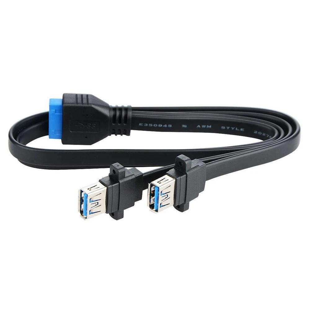 Dual Port USB 3.0 Female Screw Mount Panel Type to Motherboard 20 Pin Flat Cable 50cm You can use USB 3.0 type-A female convert USB3.0 (20pin Header) directly connected to the motherboard The usb 3.0 A female connector can screw at the Panel. USB 3.0 port x 2 switch to USB 3.0 20 pin cable there are screw Mount holes at USB 3.0 Female end. Length: 50cm Flat slim Black color cable Package Included: 1 x 1.6ft/0.5m Cable Dual Port USB 3.0 Female Screw Mount Panel Type to Motherboard 20 Pin Flat Cable 1.6ft/50cm Dual Port USB 3.0 Female Screw Mount Panel Type to Motherboard 20 Pin Flat Cable, You can use USB 3.0 type-A female convert USB3.0 (20pin Header) directly connected to the motherboard USB 3.0 port x 2 switch to USB 3.0 20 pin cable The usb 3.0 A female connector can screw at the Panel.there are screw Mount holes at USB 3.0 Female end. Length: 50cm/1.6ft Flat slim Black color cable, Package Included: 1 x 50cm/1.6ft Cable